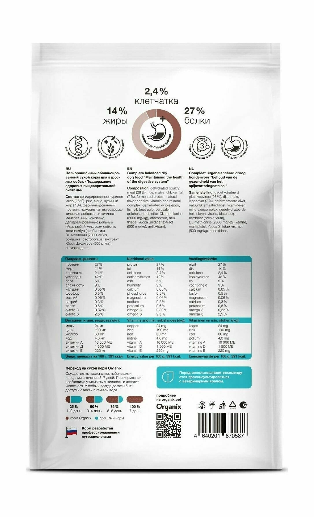 Organix prof (профилактика) Gastrointestinal сухой корм для собак "Поддержание здоровья пищеварительной системы", 800 гр