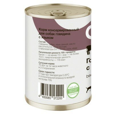 Консервы для собак говядина с языком 0,1 кг х 10 шт.