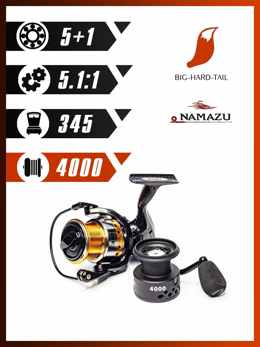 Катушка безынерционная Namazu Pro Moby Dick MD4000 5+1 подш., металлическая шпуля + запасная графитовая шпуля