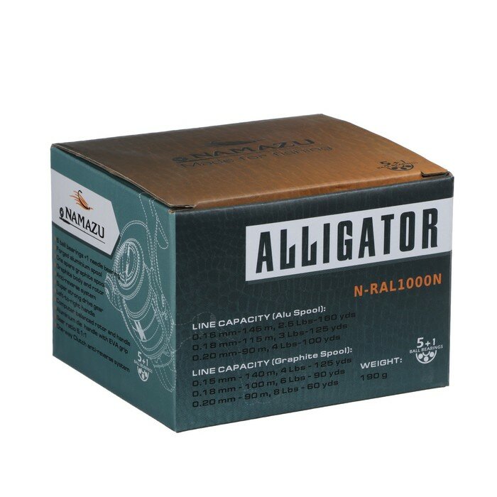 Катушка безынерционная Namazu PRO Alligator AL1000, 5+1 подш, метал. шпуля + запасная графит. шпуля