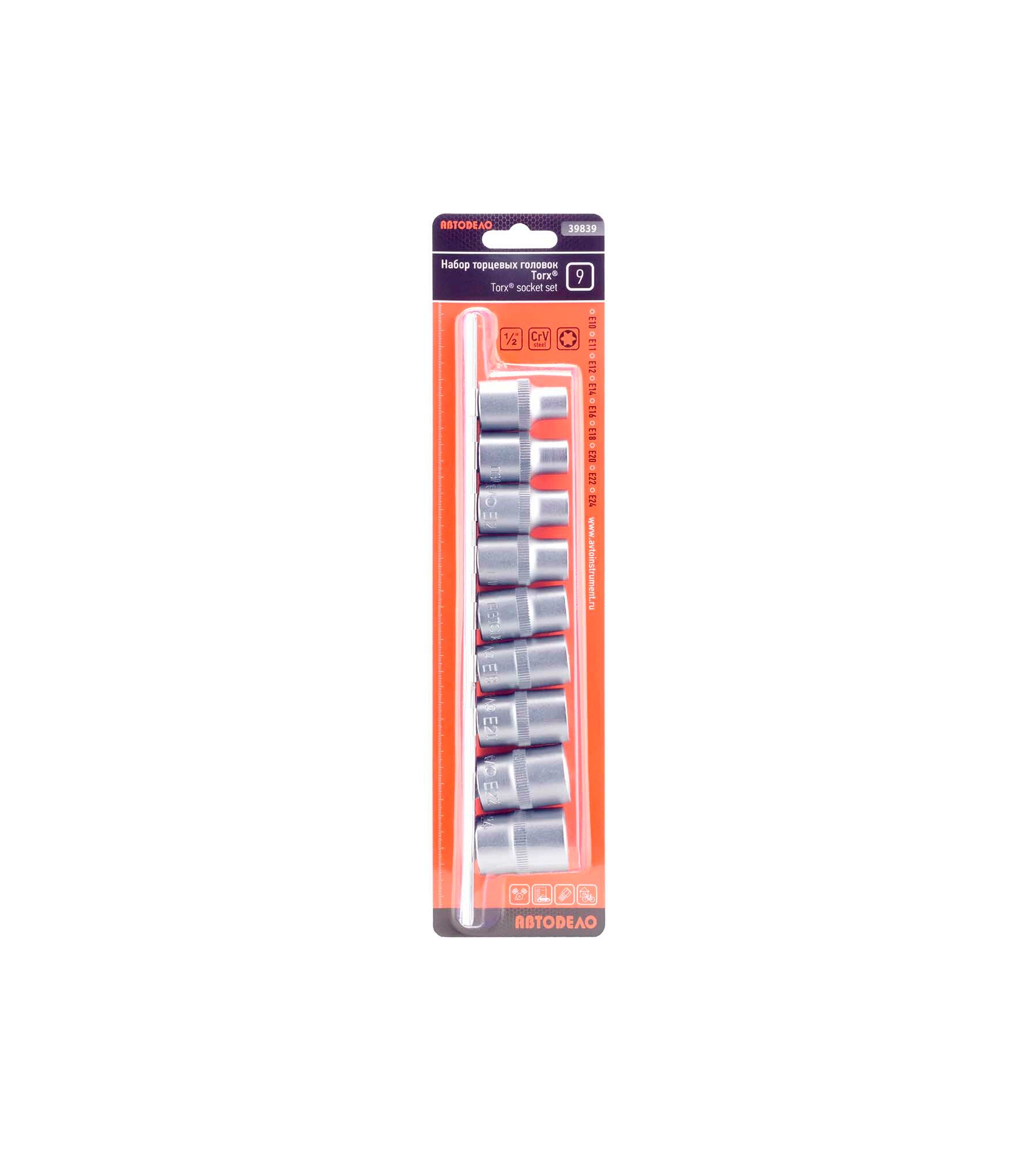 Купить Набор головок TORX E10-E24, DR1/2", 9 шт. на планке АвтоDело 39839 (11557)