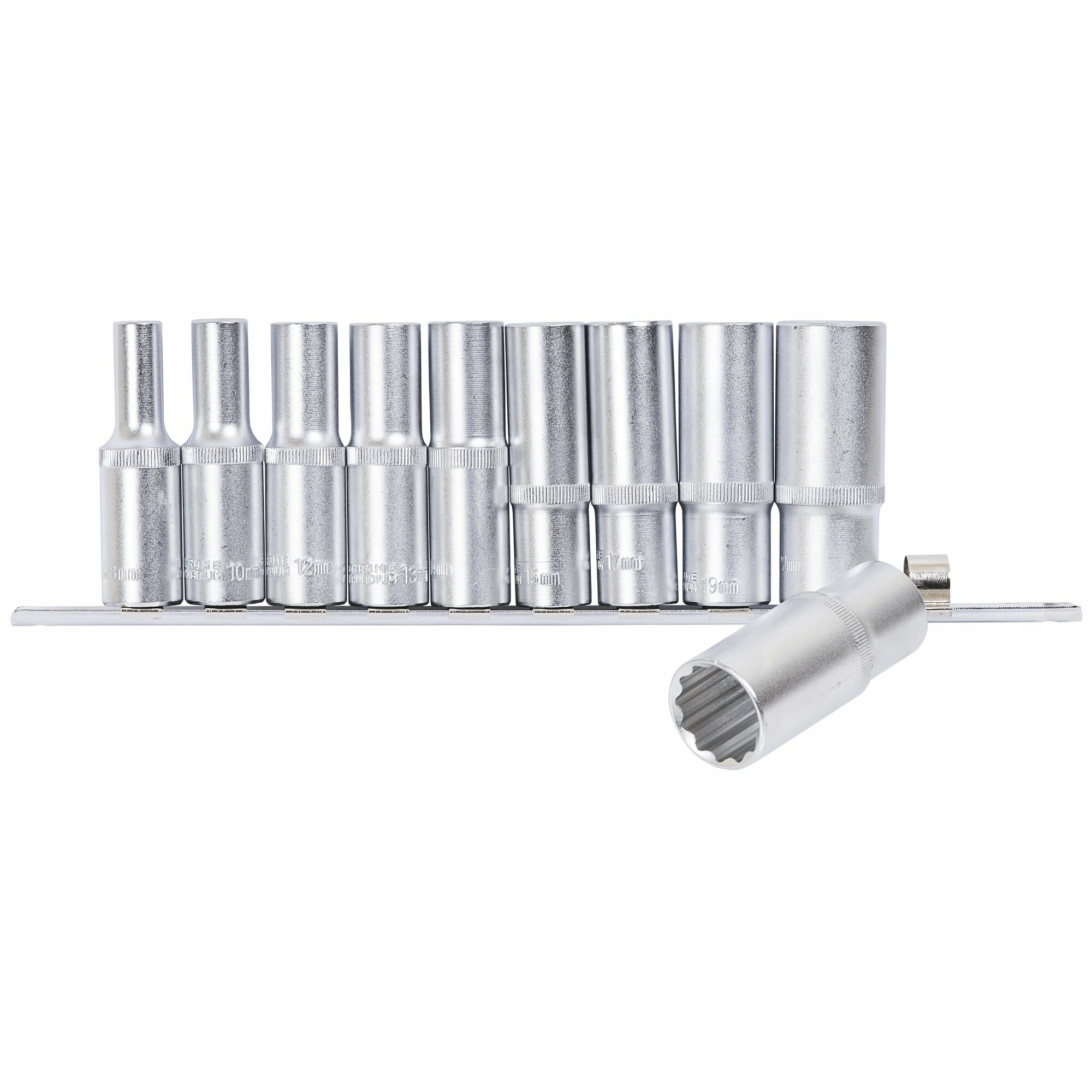 Купить Набор торцевых головок глубокие 1/2 12-гранные 8-24 мм 10 шт.