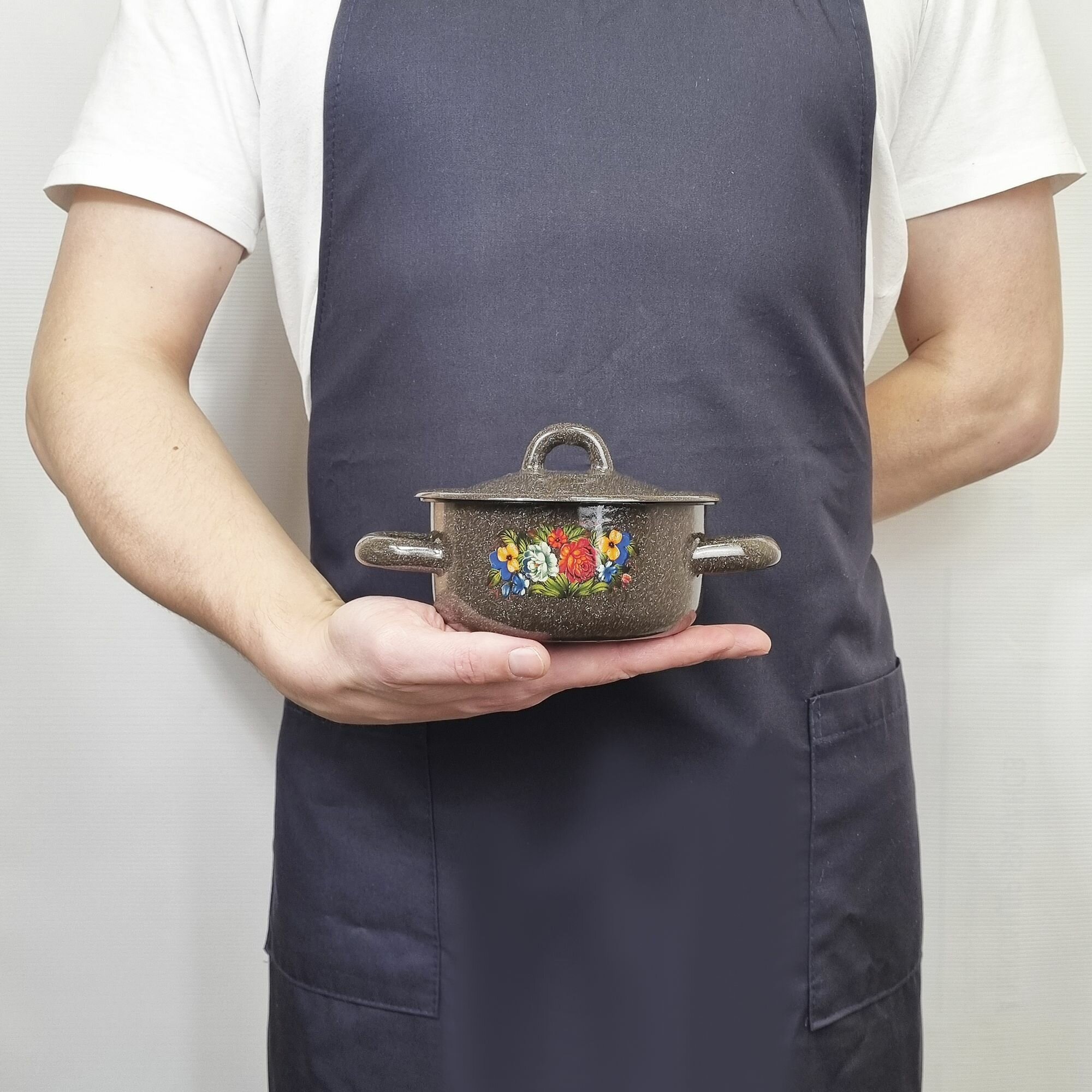 Кастрюля эмалированная 2,9 л с рисунком коричневая