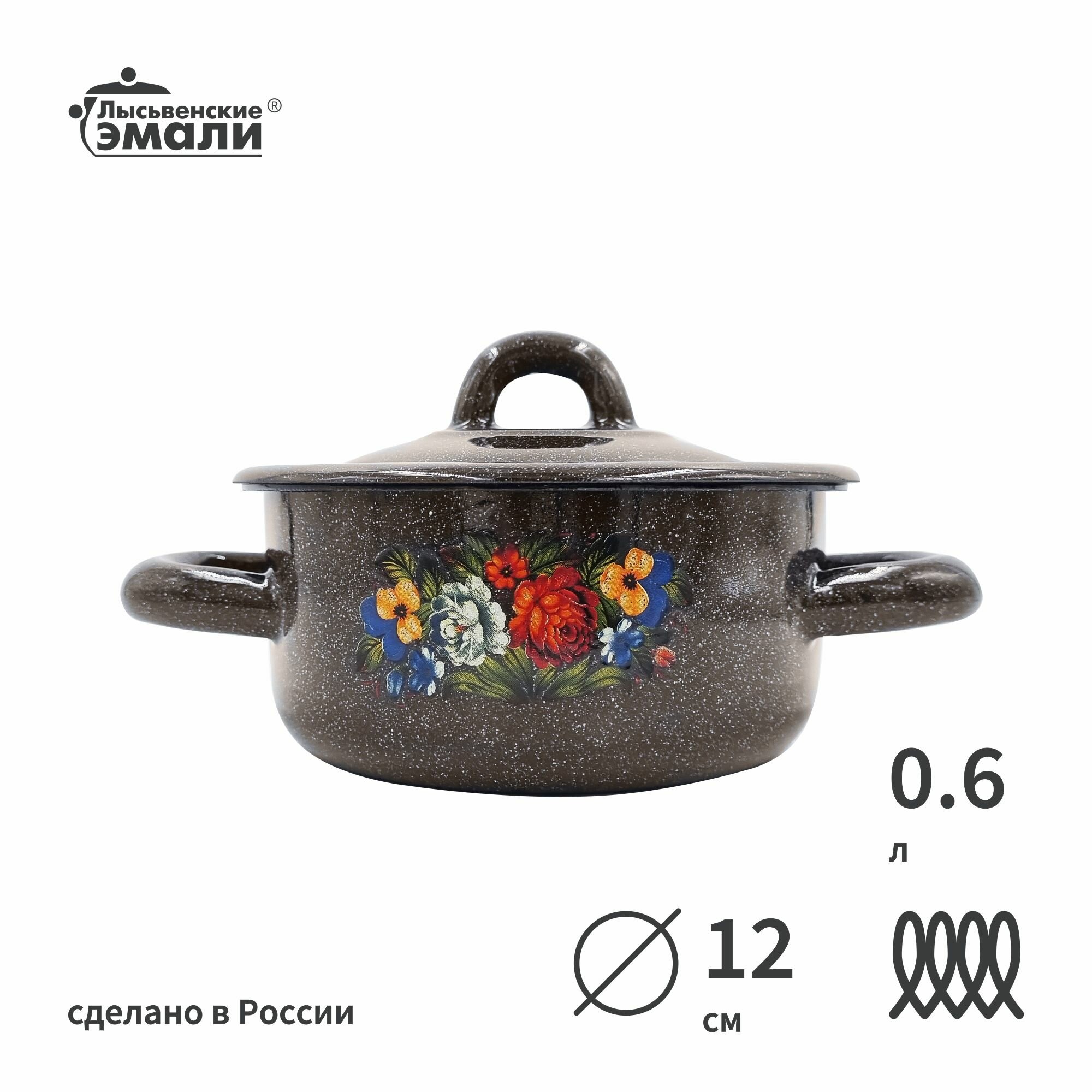 Кастрюля "Лысьвенские эмали" Рябчик коричневый, эмалированная сталь 0,6 литра