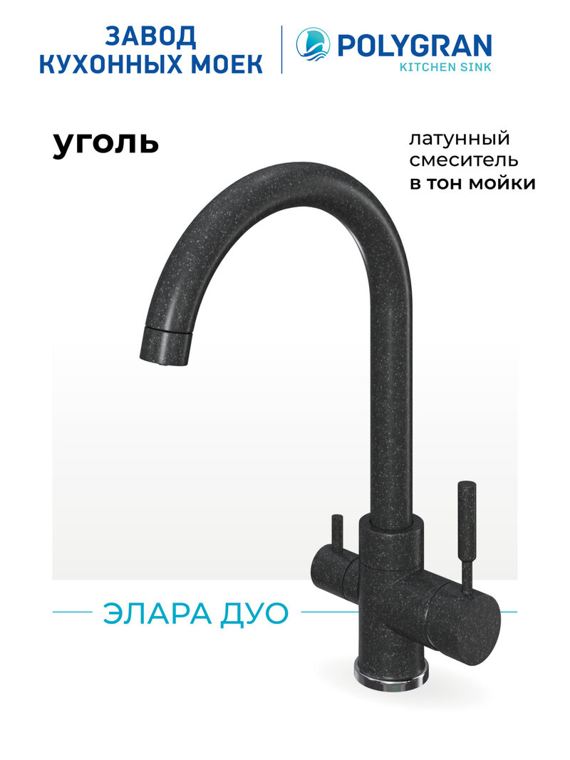 Смеситель Polygran кухонный Элара Дуо (Чёрный №16)