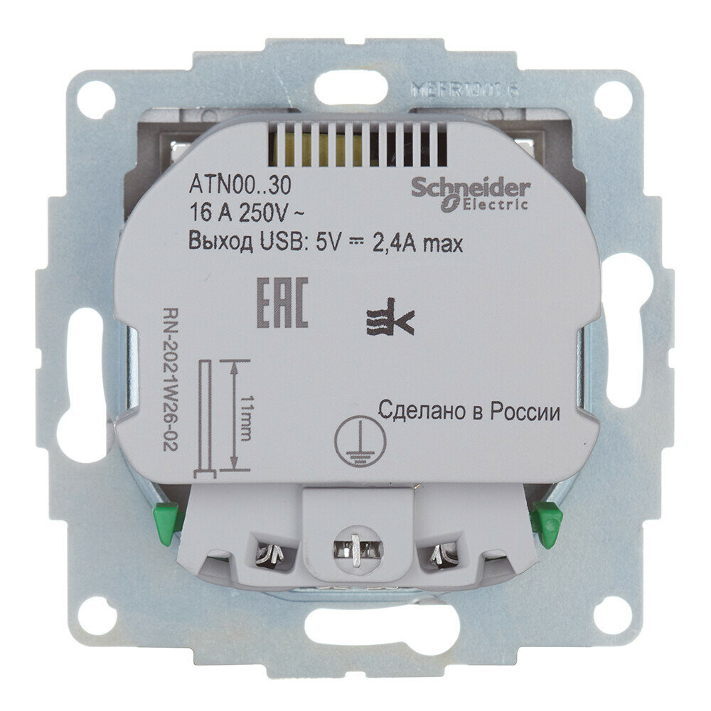 Розетка USB Systeme Electric (schneider Electric) SCHNEIDER ELECTRIC ATLASDESIGN 5В/2,1 А, 2х5В/1,05 А, механизм, Белый, ATN000133