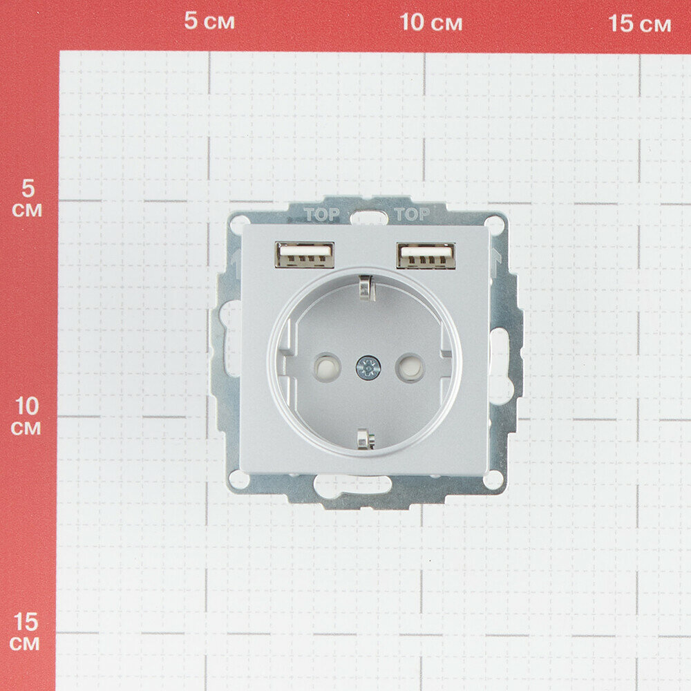 ATLASDESIGN USB Розетка A+A, 5В/2,1 А, 2х5В/1,05 А, мех, грифель ATN000733
