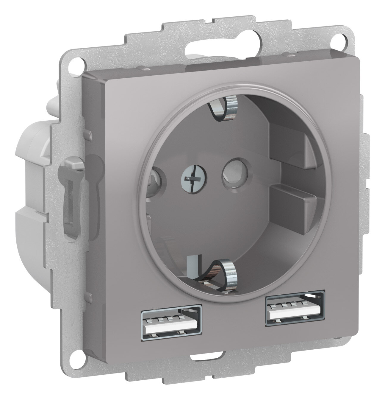Розетка USB двойная 2м AtlasDesign сталь 5В/2100мА 2х5В/1050мА механизм встроенный монтаж (Schneider Electric), арт. ATN000933