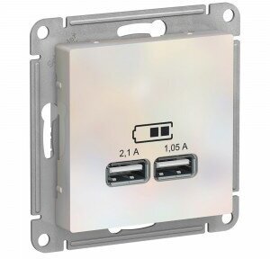 Купить Розетка USB A+A (5В/2,1А 2х5В/1,05А) Жемчуг, Systeme Electric AtlasDesign