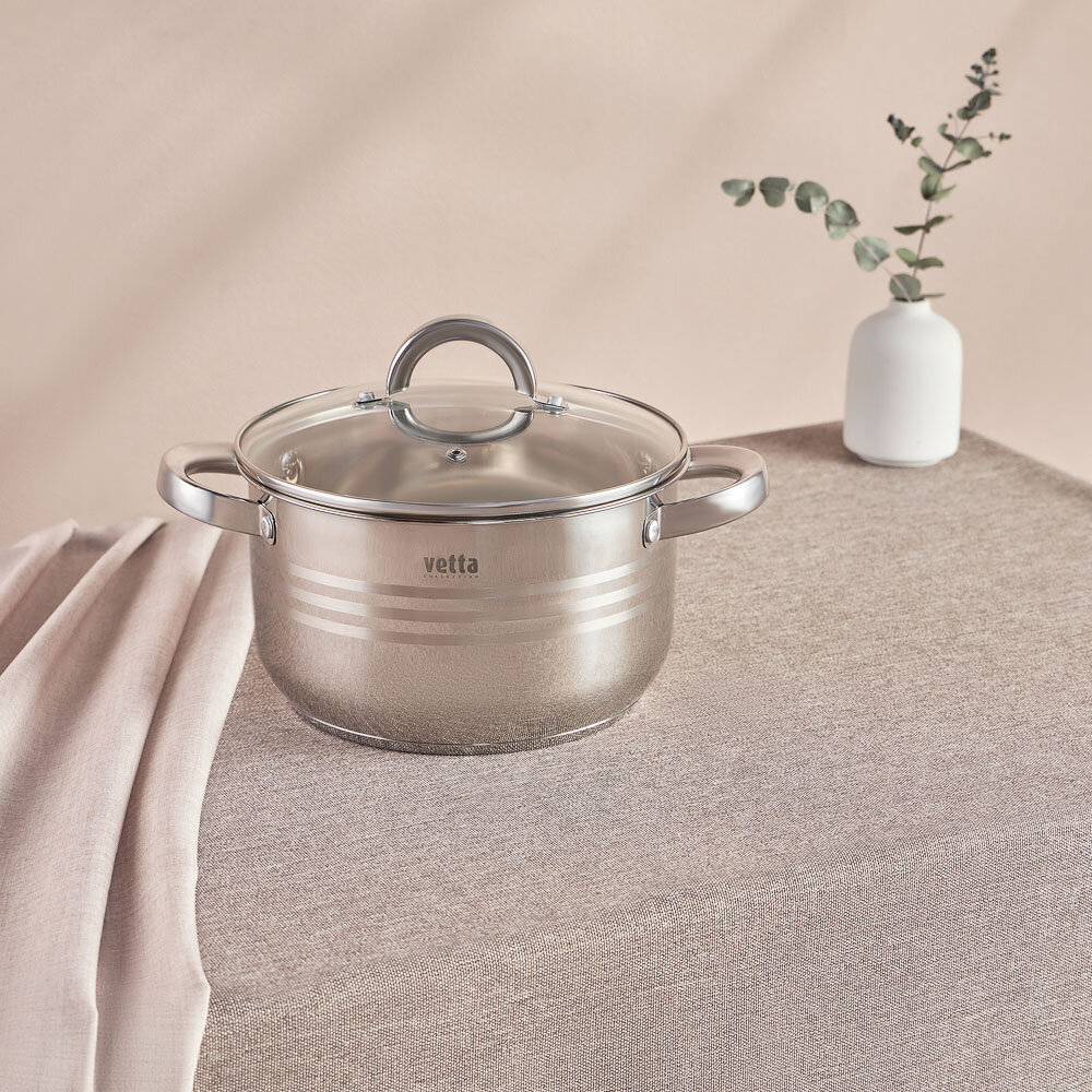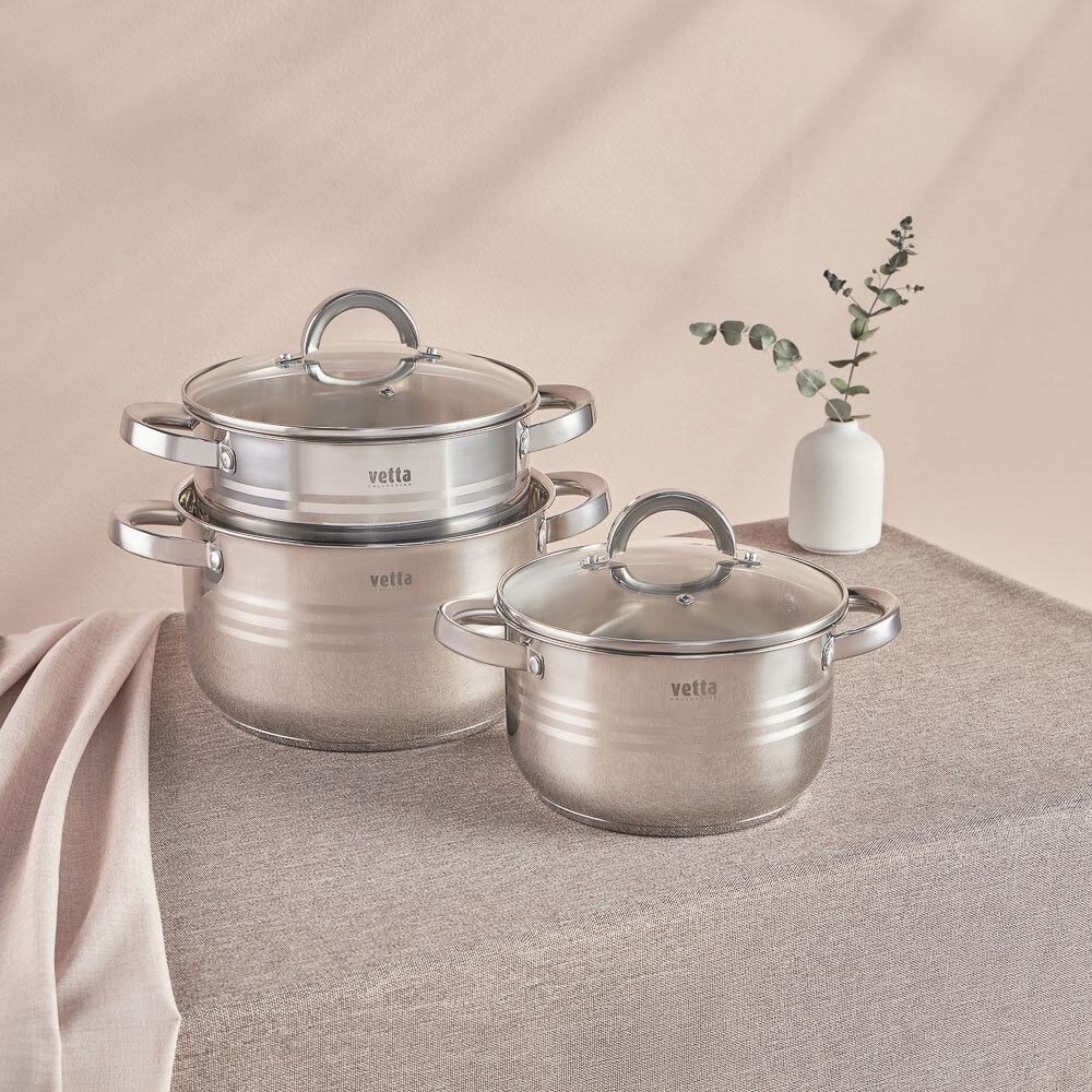 Кастрюли VETTA Фултон со стеклянными крышками 6 предметов, Объем кастрюль 2,9л, 4л и 5,4л, нержавейка