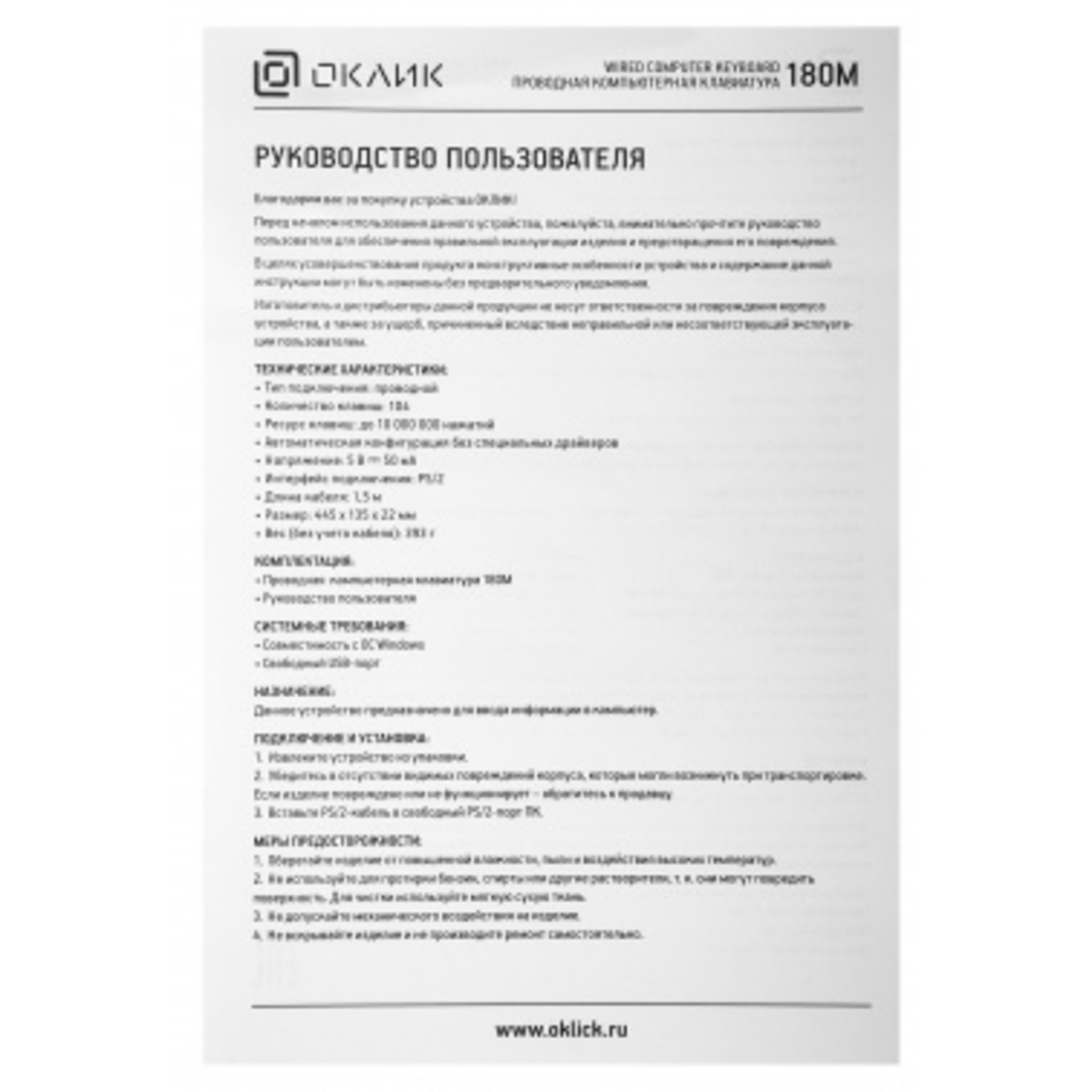 Клавиатура Oklick 180M (313180), PS/2, черный