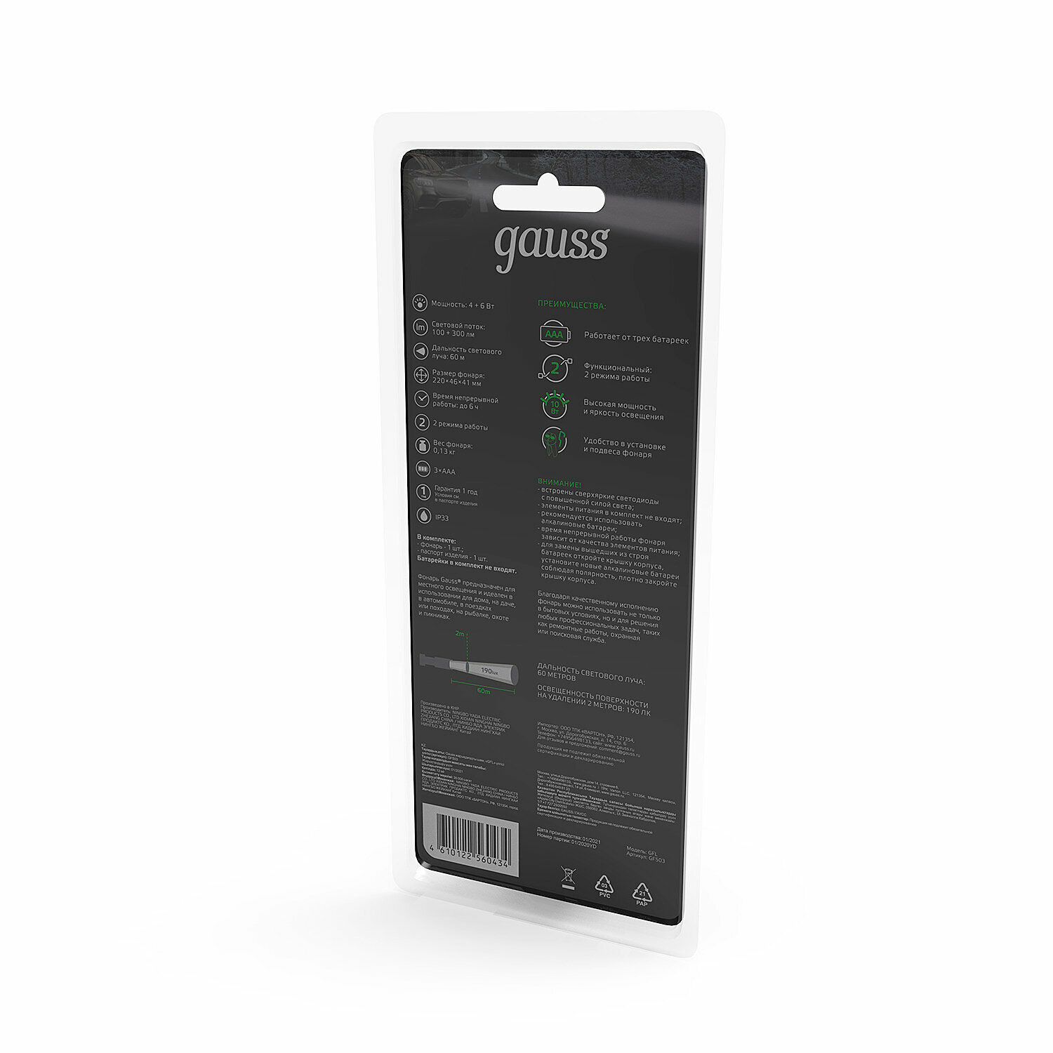 Фонарь рабочий 10W 3xAAA LED Gauss интересное: