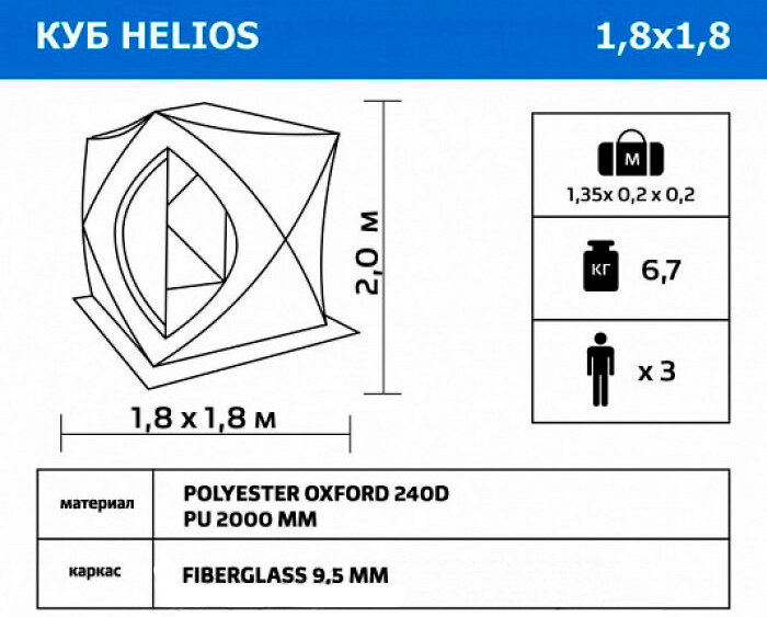 Зимняя палатка Helios Cube Extreme 1,5 с широким входом