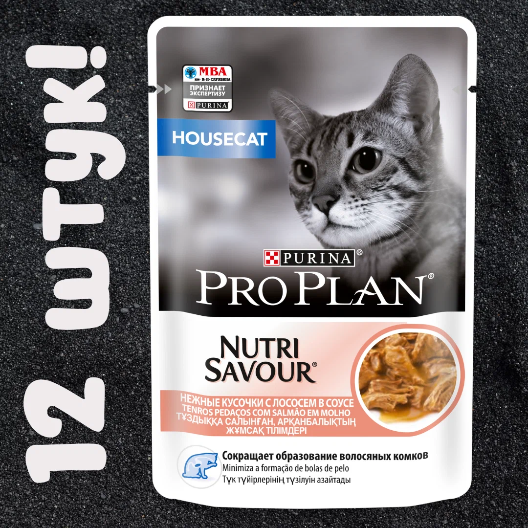 Корм для кошек PRO PLAN Housecat для домашних, с лососем в соусе пауч 85г (упаковка - 26 шт)