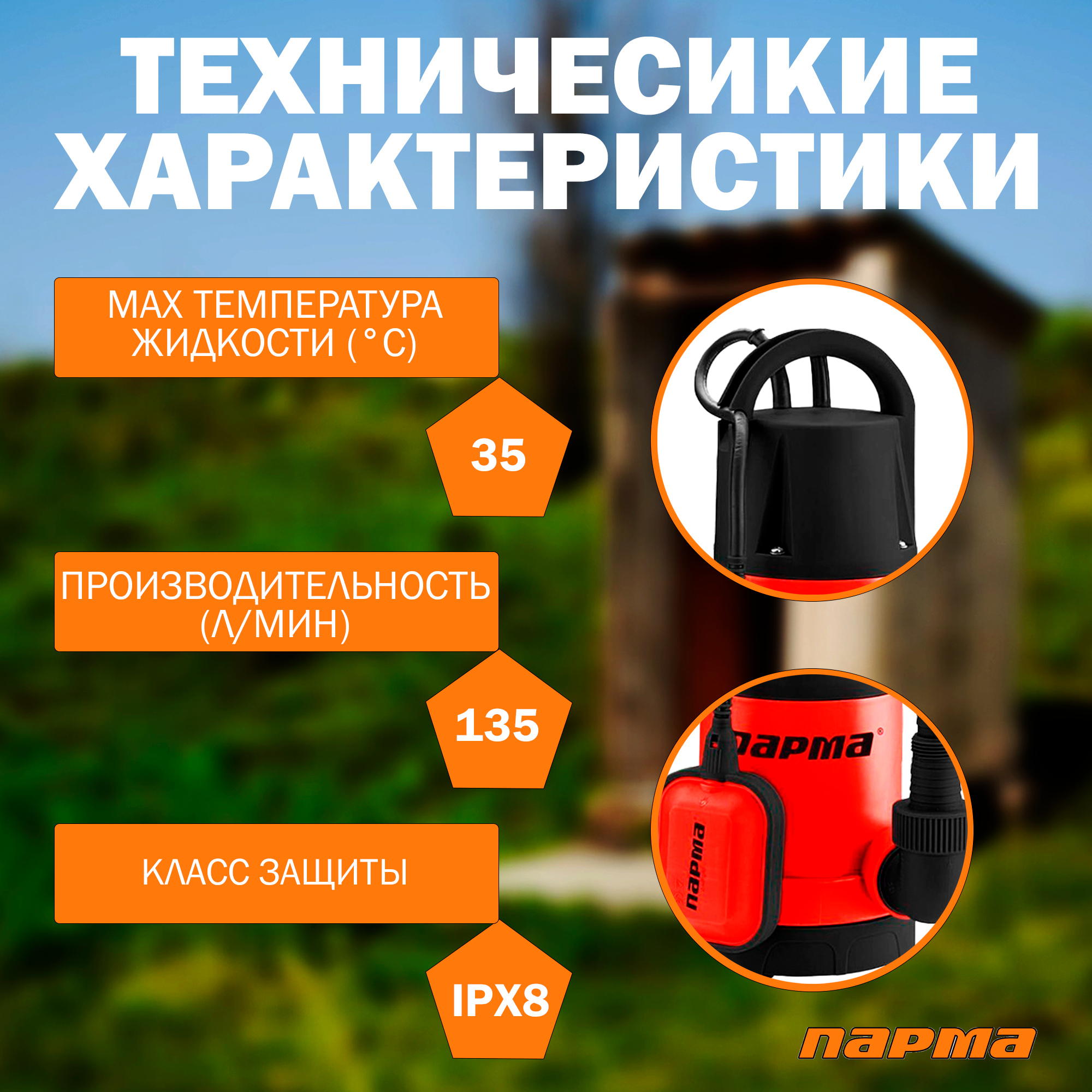 Купить Насос садовый дренажный Парма НД- 400/35П, 400 Вт, 8100 л/час