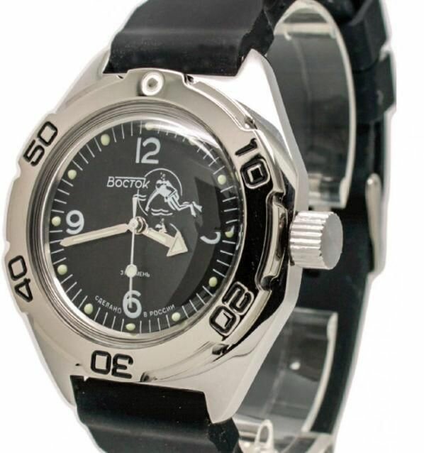 Часы наручные мужские механические с автоподзаводом Восток Амфибия 110650_steel_110, сталь 110