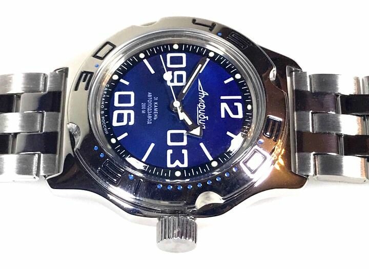 Часы наручные мужские механические с автоподзаводом Восток Амфибия 110650_steel_110, сталь 110
