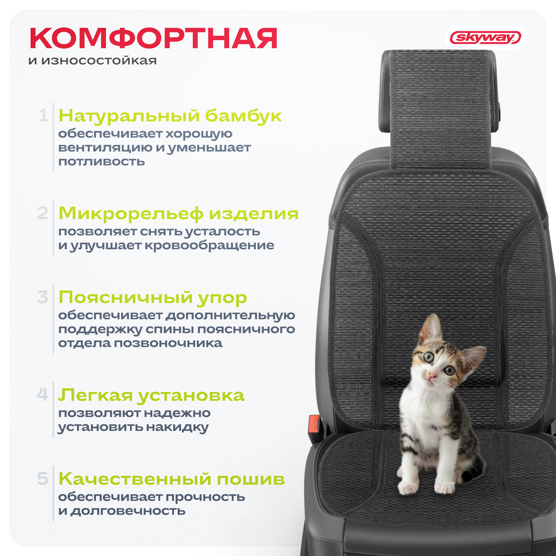 СохранитьНакидка сиденья бамбук SKYWAY Summer-05 с поддержкой спины черный 1 шт (S01302044) интересное: