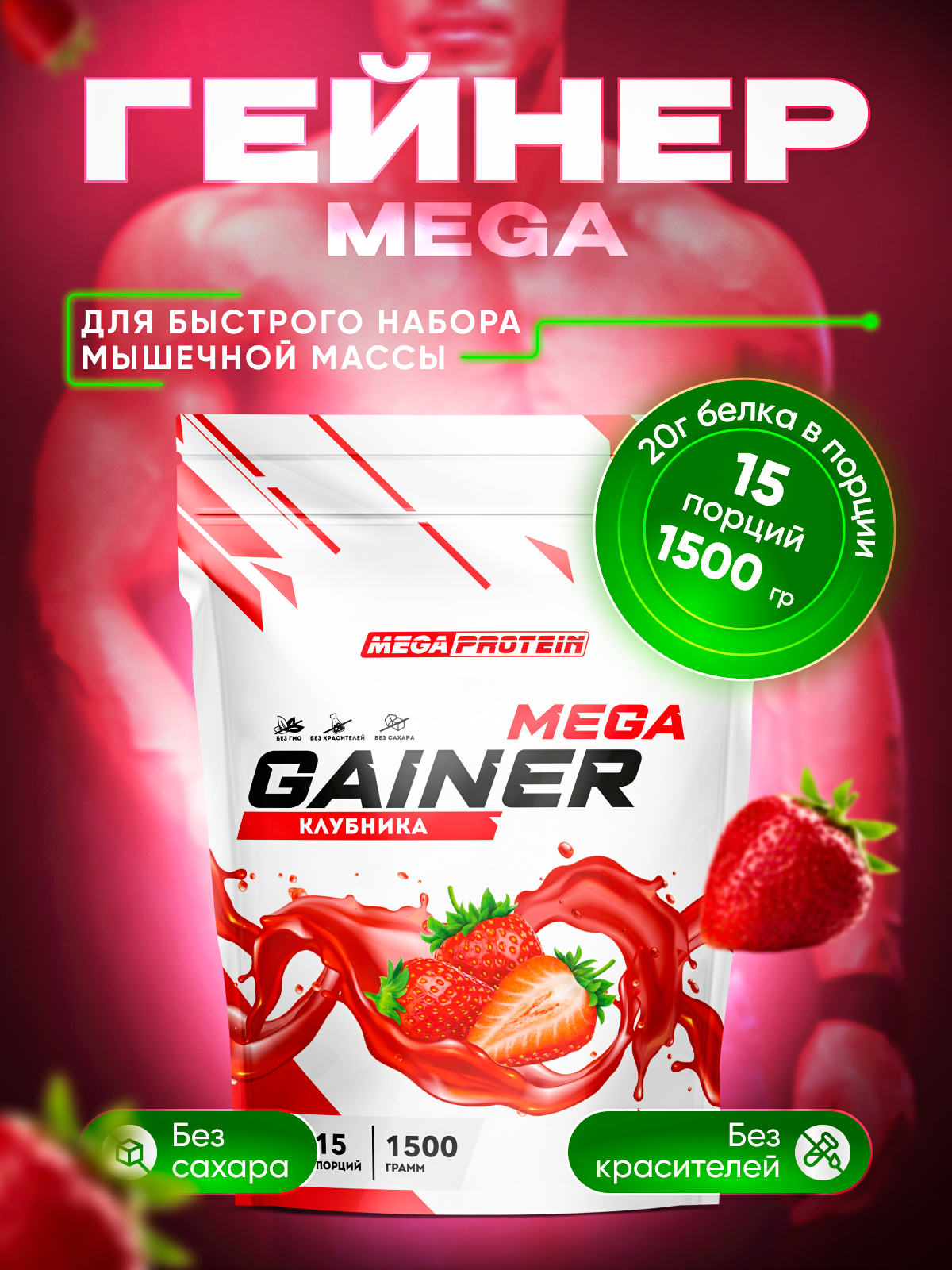 Купить Гейнер для набора массы / Высокоуглеводный гейнер Megaprotein, Клубника / 1500 гр, 15 порций