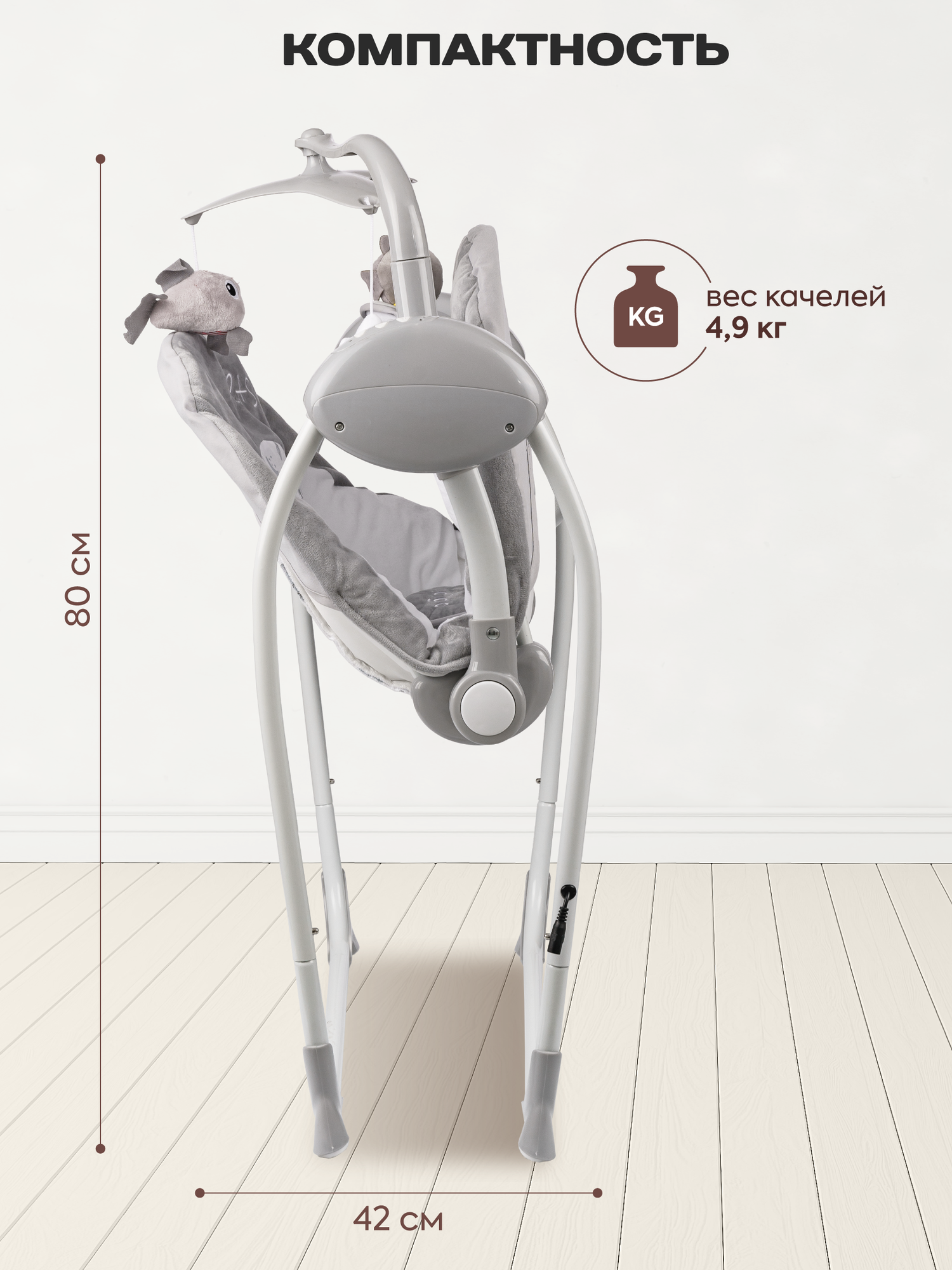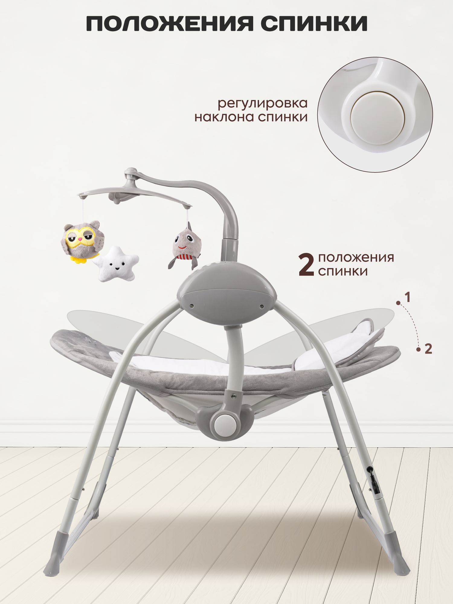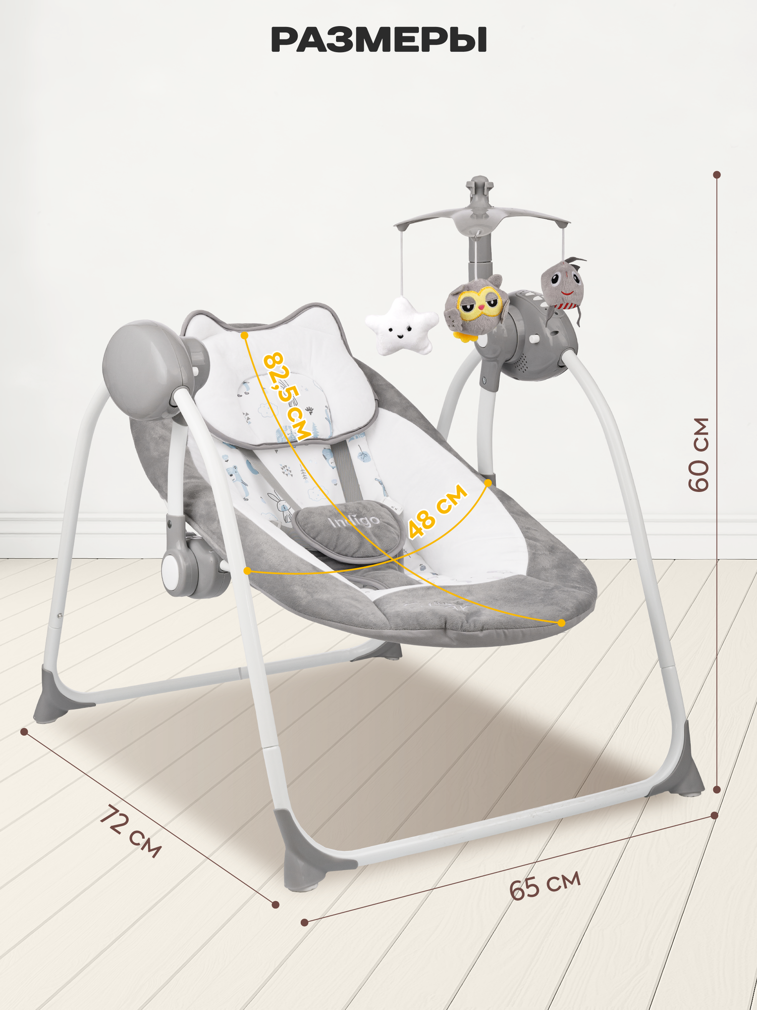 Электрокачели Indigo STAR с мобилем и пультом, серый