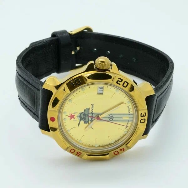 Мужские наручные часы Восток Командирские 53925Б-classic, натуральная кожа, черный