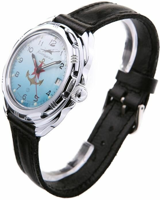 Мужские наручные часы Восток Командирские 53925Б-classic, натуральная кожа, черный