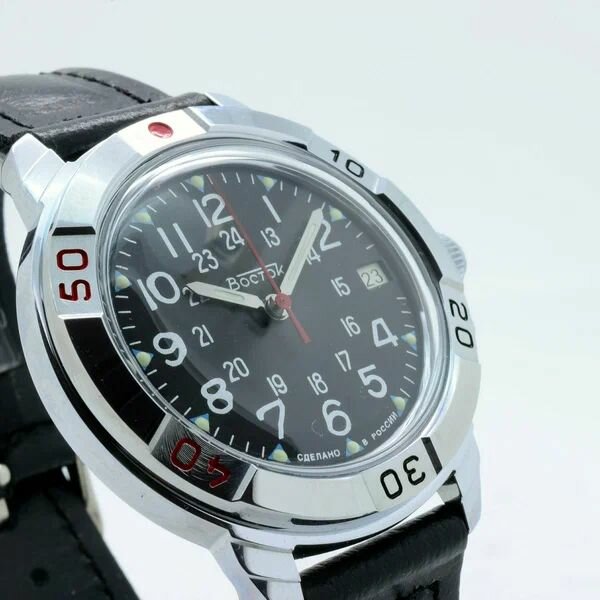 Мужские наручные часы Восток Командирские 53925Б-classic, натуральная кожа, черный