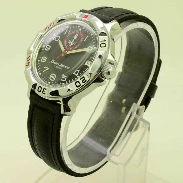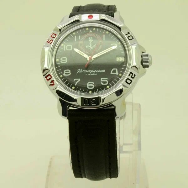 Мужские наручные часы Восток Командирские 811719-classic, натуральная кожа, черный