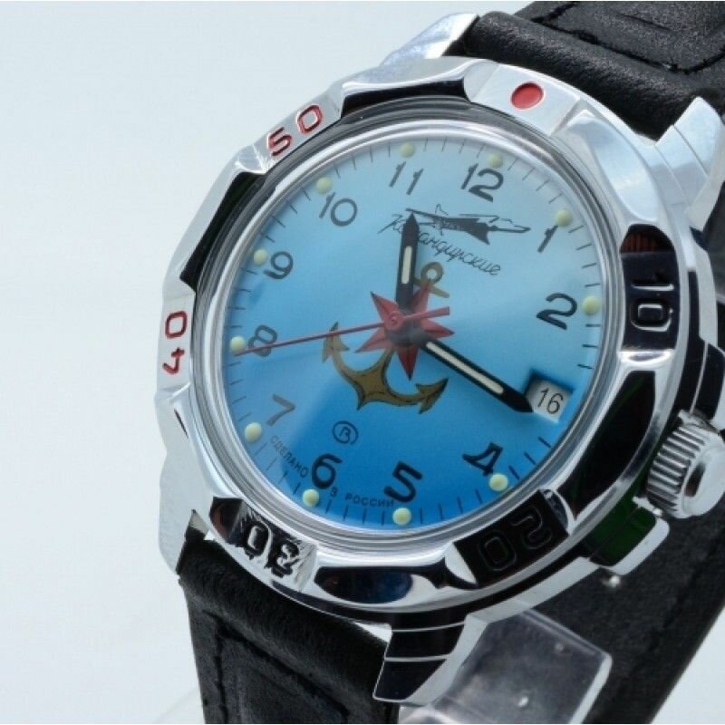 Мужские наручные часы Восток Командирские 811719-classic, натуральная кожа, черный