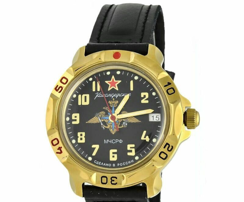 Мужские наручные часы Восток Командирские 53925Б-classic, натуральная кожа, черный