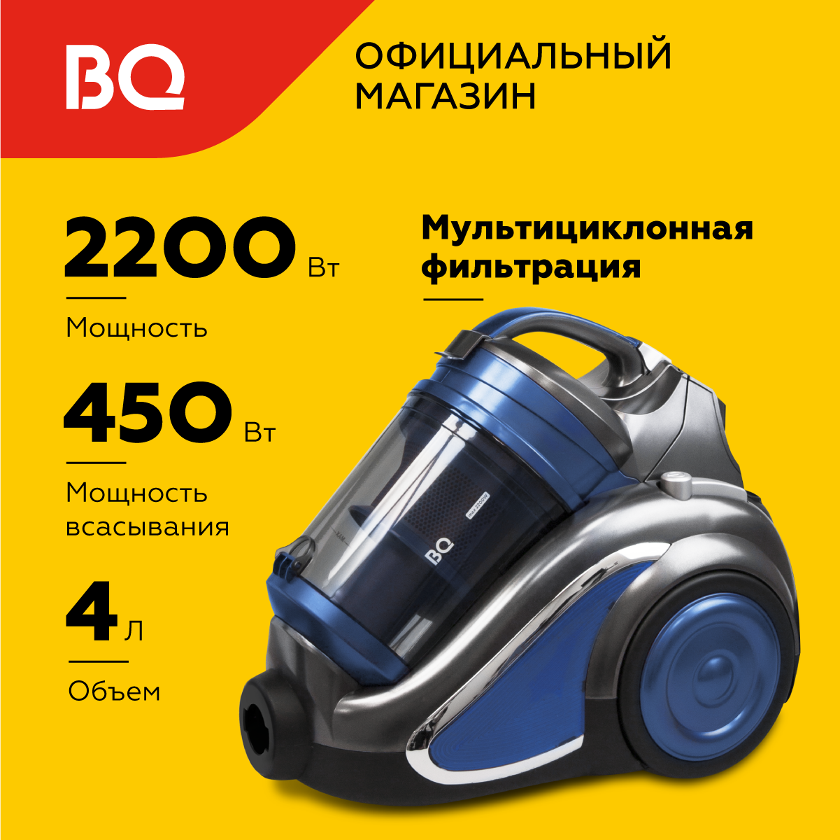 Пылесос BQ-VC2208MC 2200 Вт, серый-красный