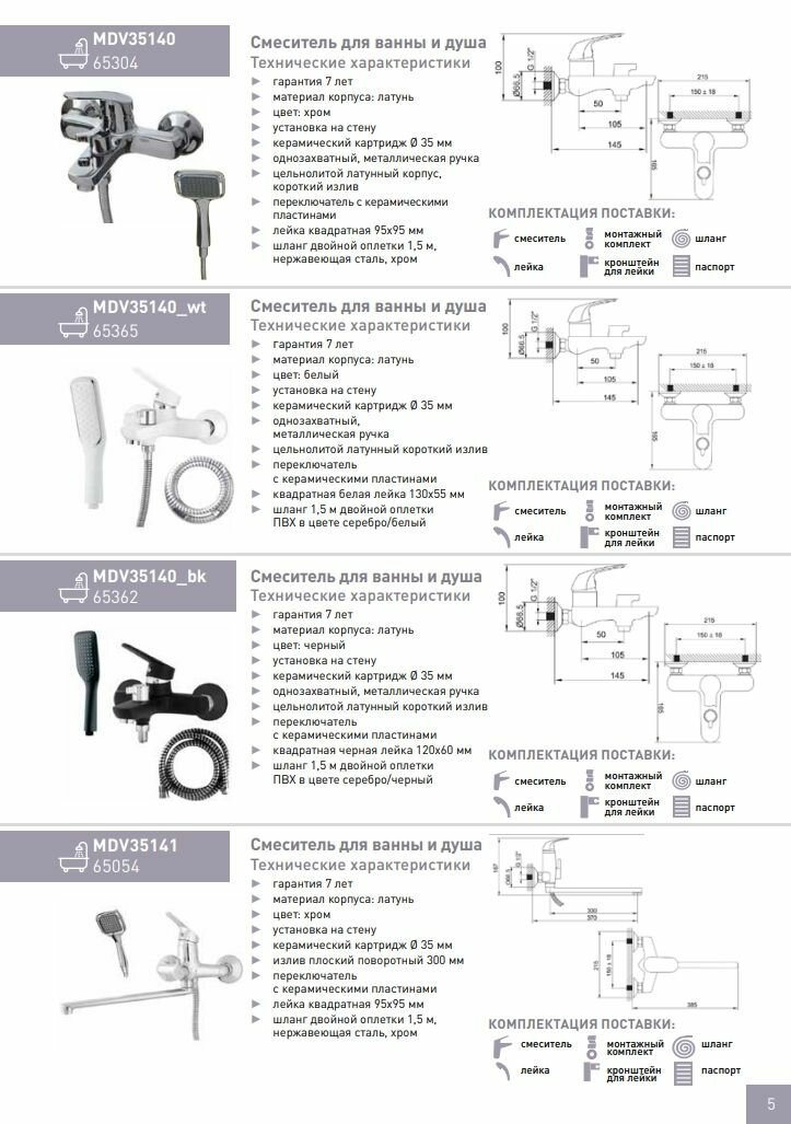 Смеситель ванна Moderno Black картридж д.35мм короткий излив MDV35140_bk Melodia Della Vita