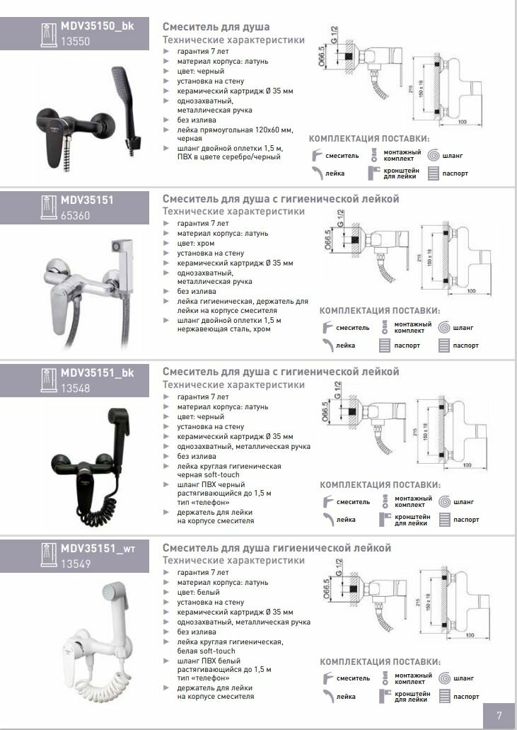 MELODIA Смесителья для душа Moderno картридж д.35мм с гиг.лейкой и держ.на корпусе MDV35151 65360