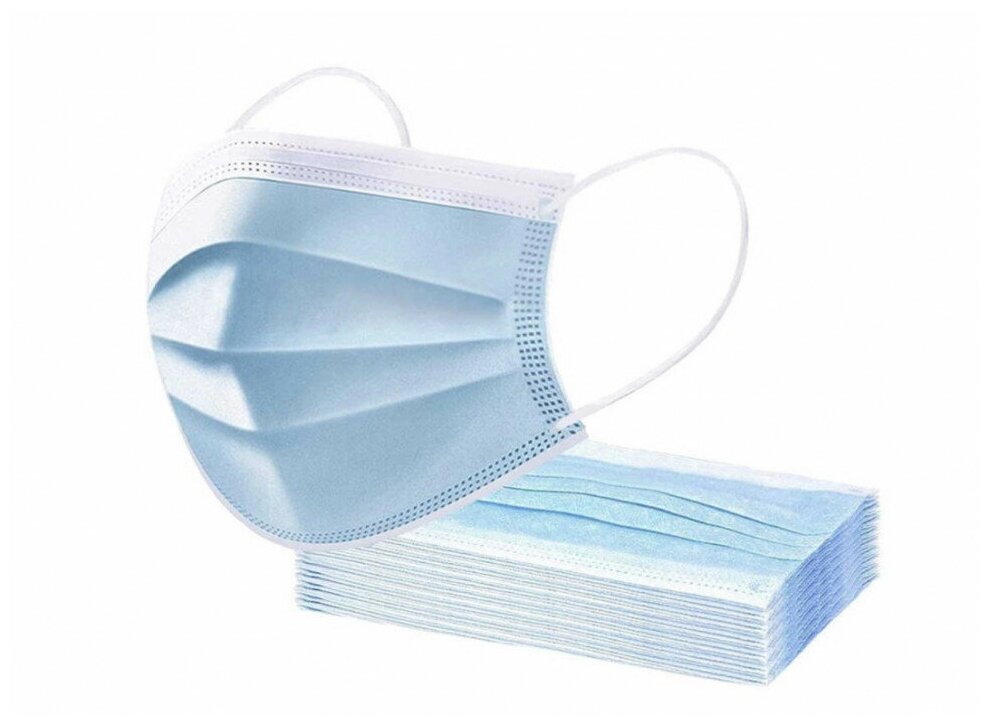 Маска медицинская 3-х слойная голубая, 50 штук в упаковке.
