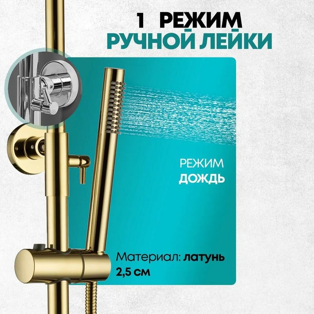 Душевая стойка BelBagno LUCE LUC-VSCM-ORO со смесителем для ванны, верхним и ручным душем, золото