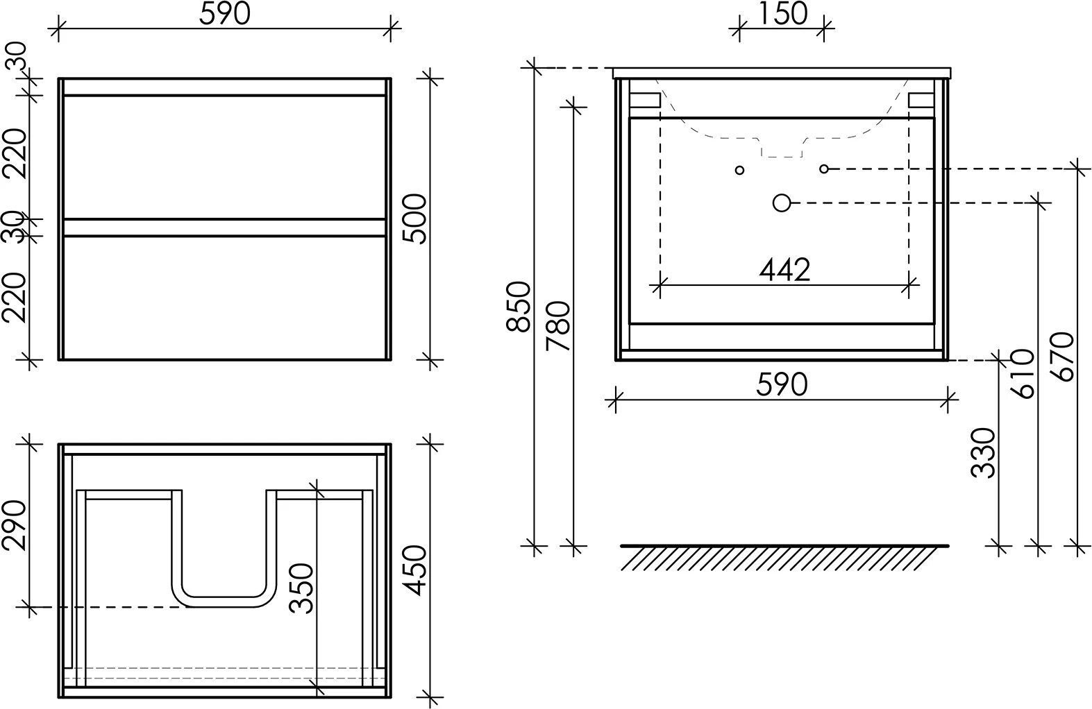 Тумба под раковину Sancos Cento 60 два ящика, белый глянец (CN60W)