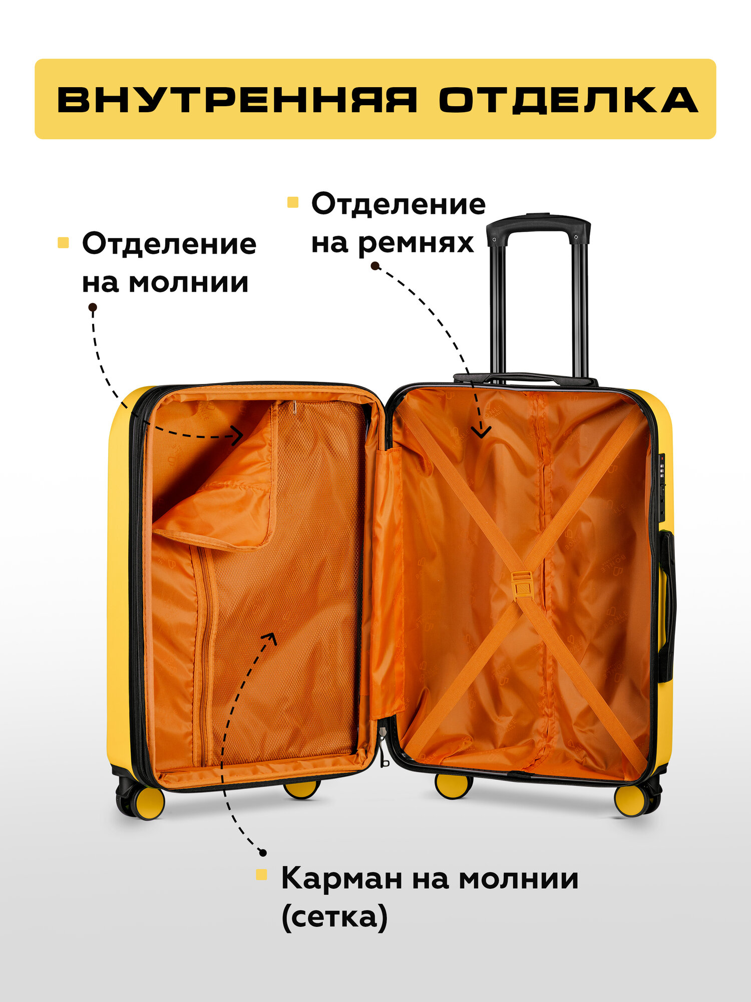 СохранитьЧемодан на колесах M желтый Bonle, премиум ABS-пластик 65 см, 72 л, средний дорожный интересное: