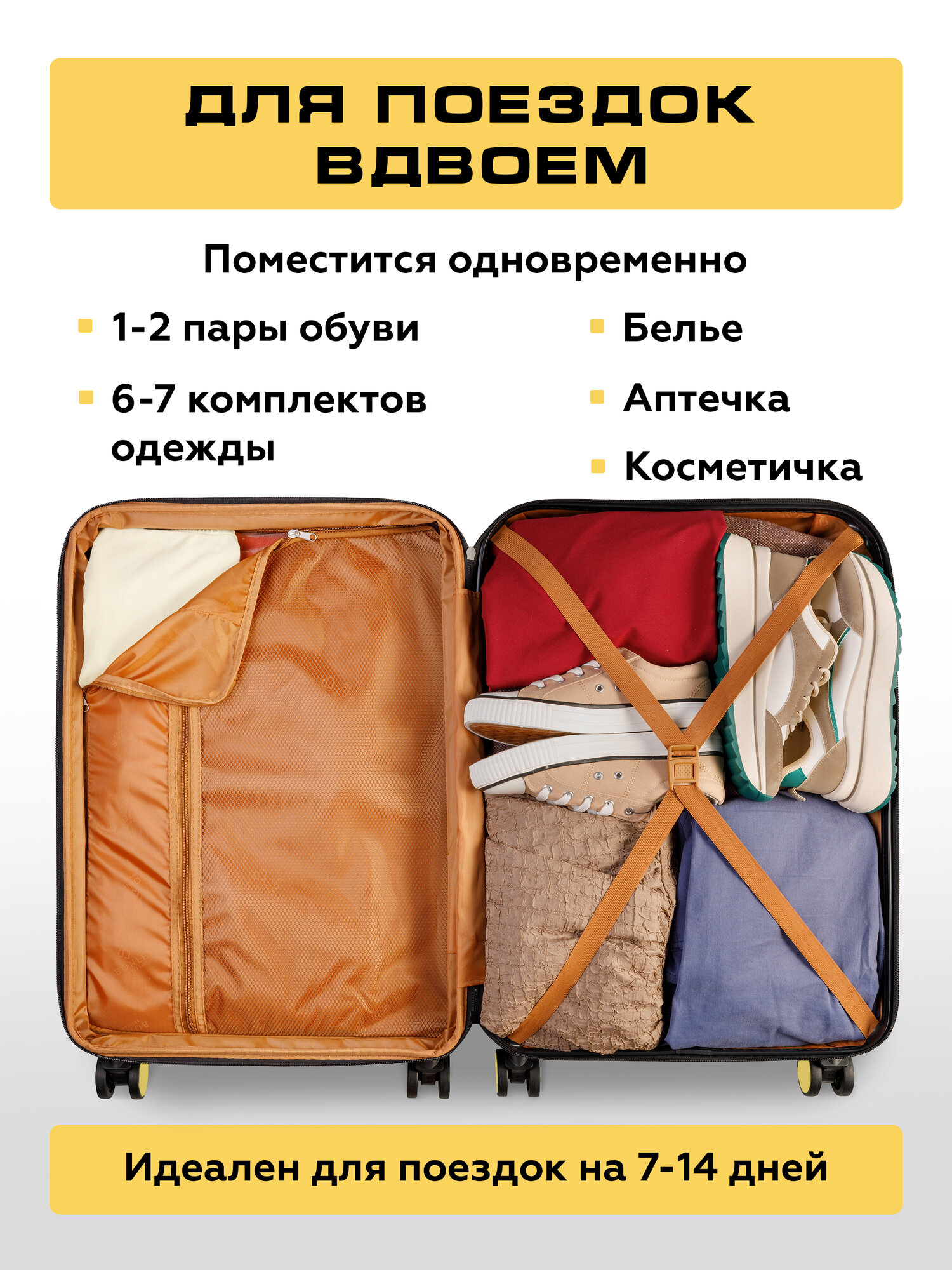 Комплект чемоданов на колесах желтый 2 шт размер L, M дорожный средний и большой