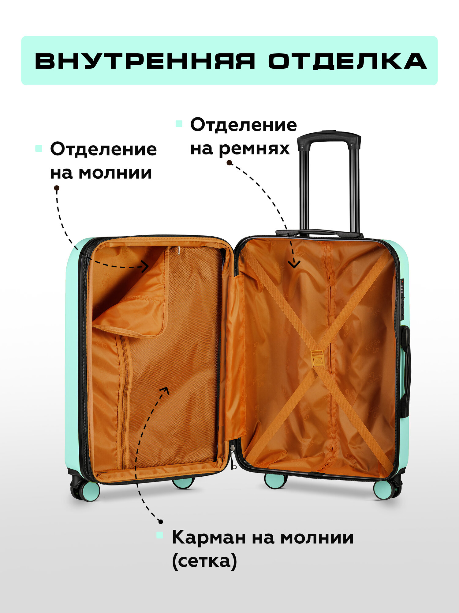 Купить Чемодан на колесах M мятный Bonle, премиум ABS-пластик 65 см, 72 л, средний дорожный