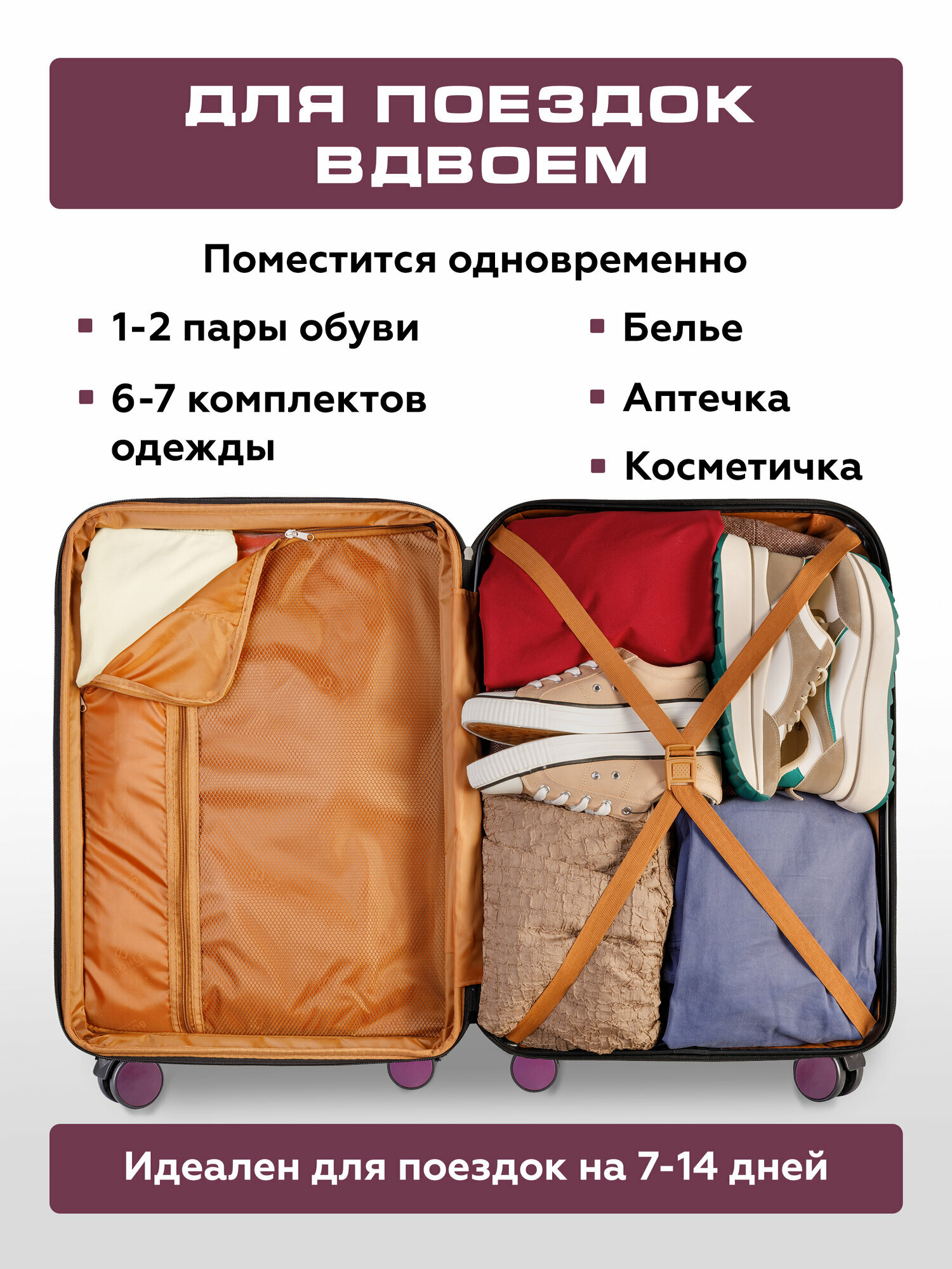 Чемодан на колесах М, средний с расширением / 72 л, 66,5 см, дорожный, пластиковый винный