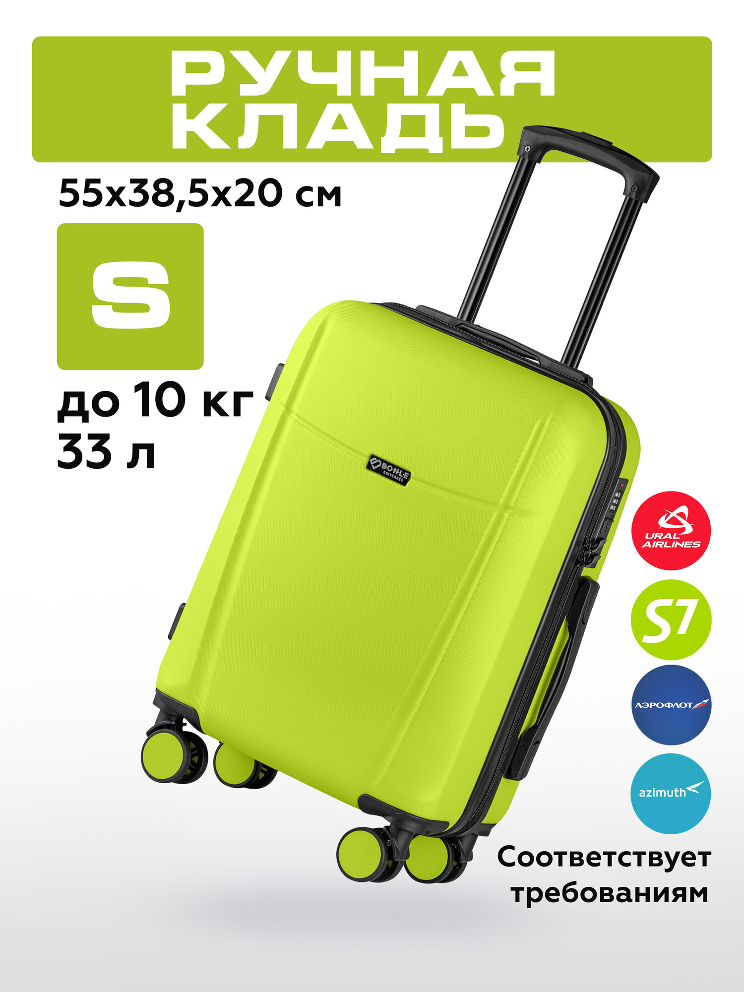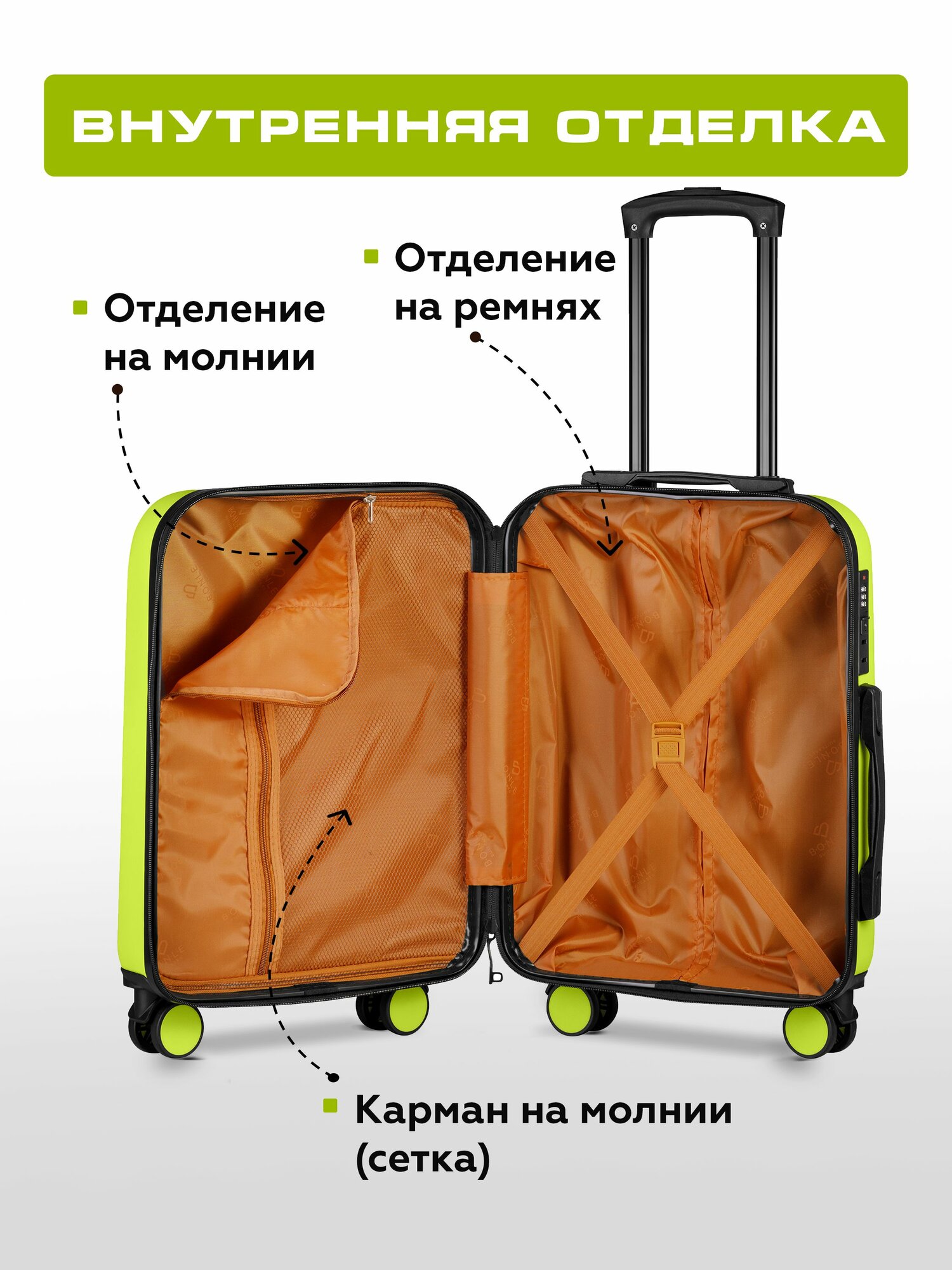 Купить Чемодан на колесах ручная кладь салатовый Bonle, премиум ABS-пластик, размер S, 55 см, 33 л, дорожный, маленький, детский