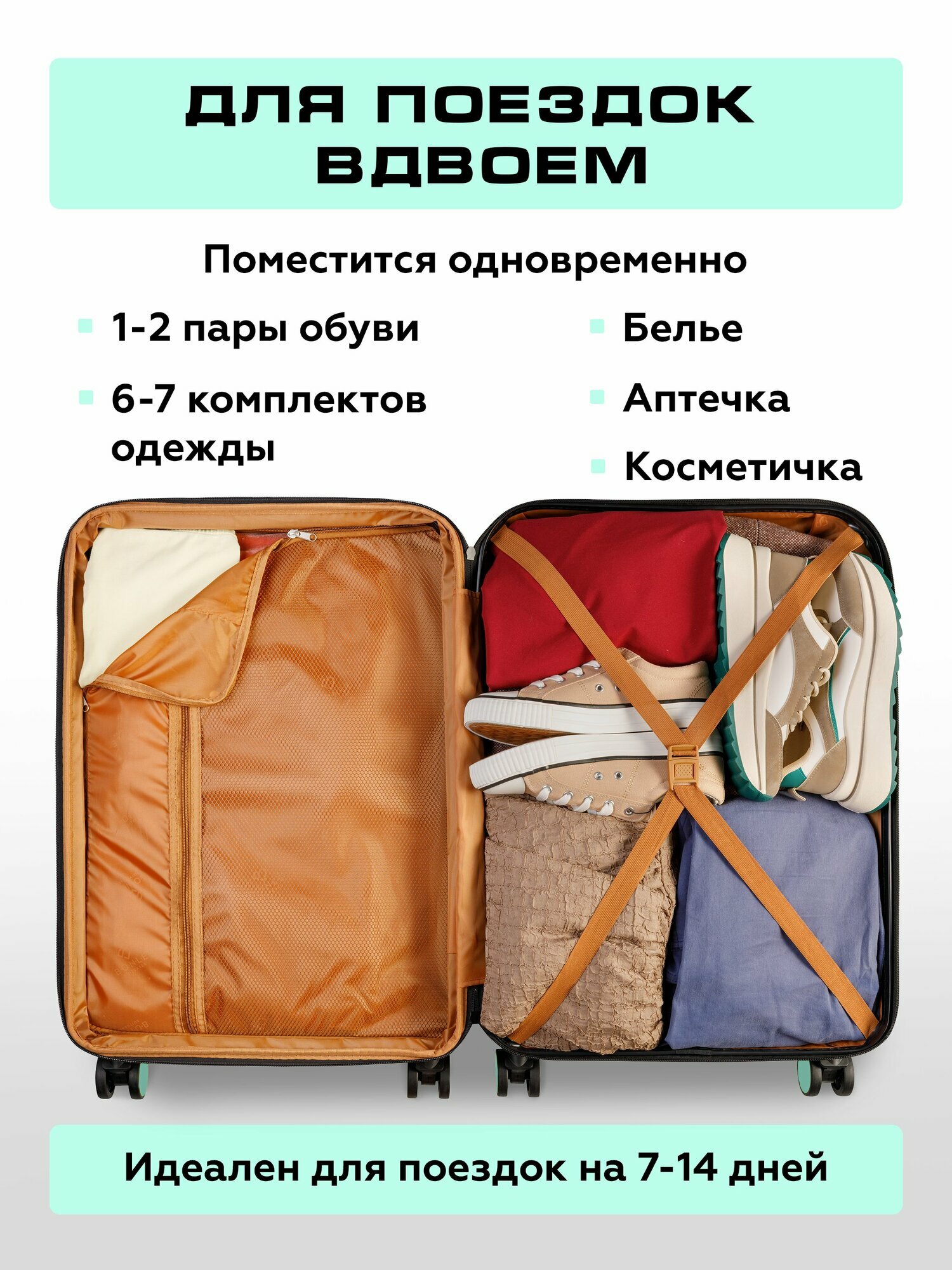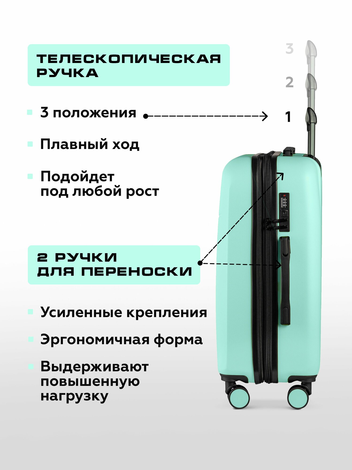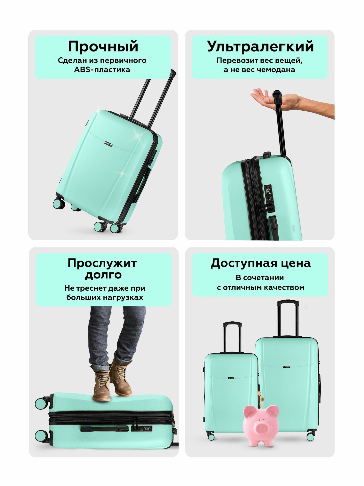 Чемодан на колесах M мятный Bonle, премиум ABS-пластик 65 см, 72 л, средний дорожный
