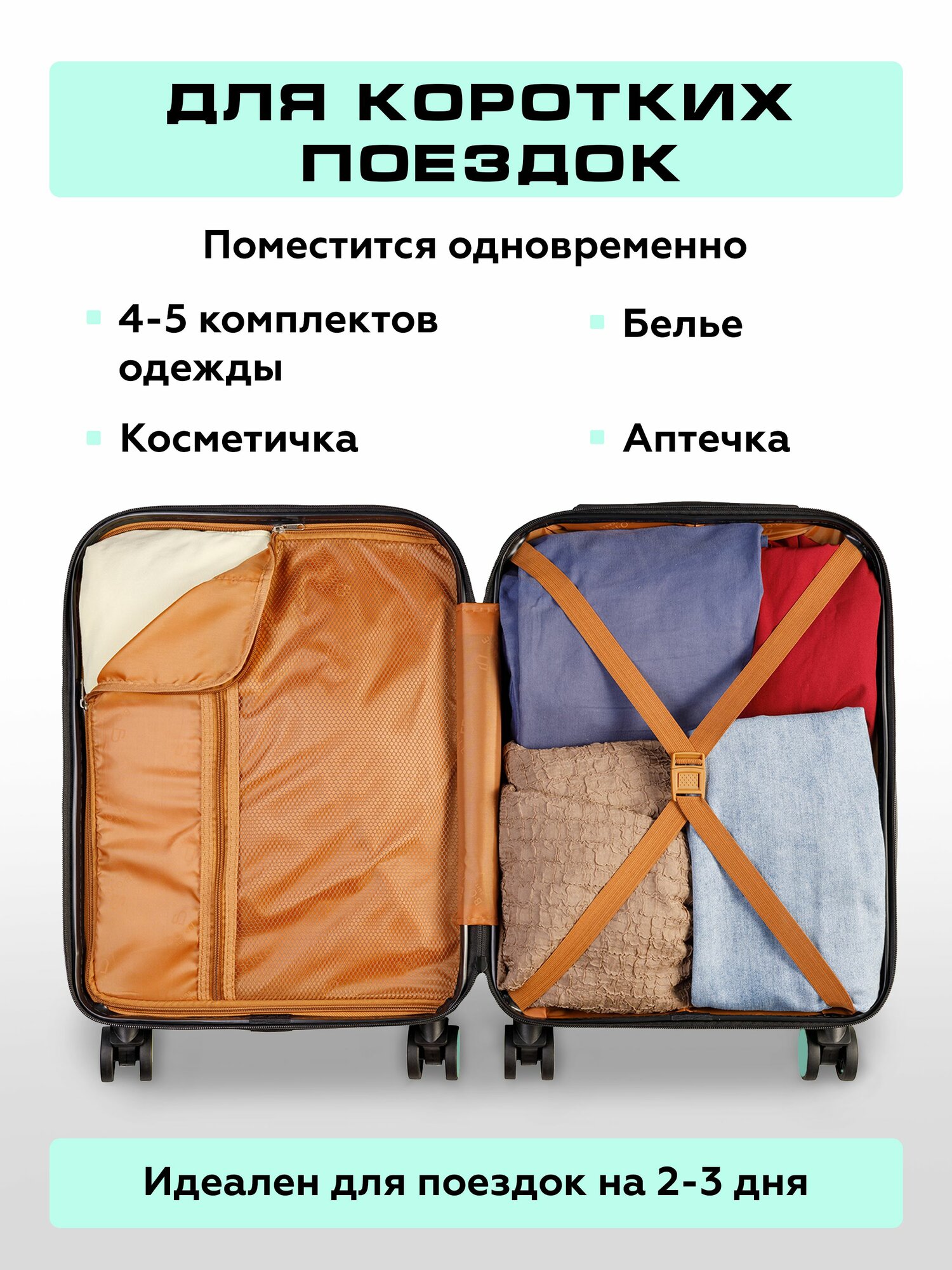 Чемодан на колесах ручная кладь черный Bonle, премиум ABS-пластик, размер S, 55 см, 33 л, дорожный, маленький, детский