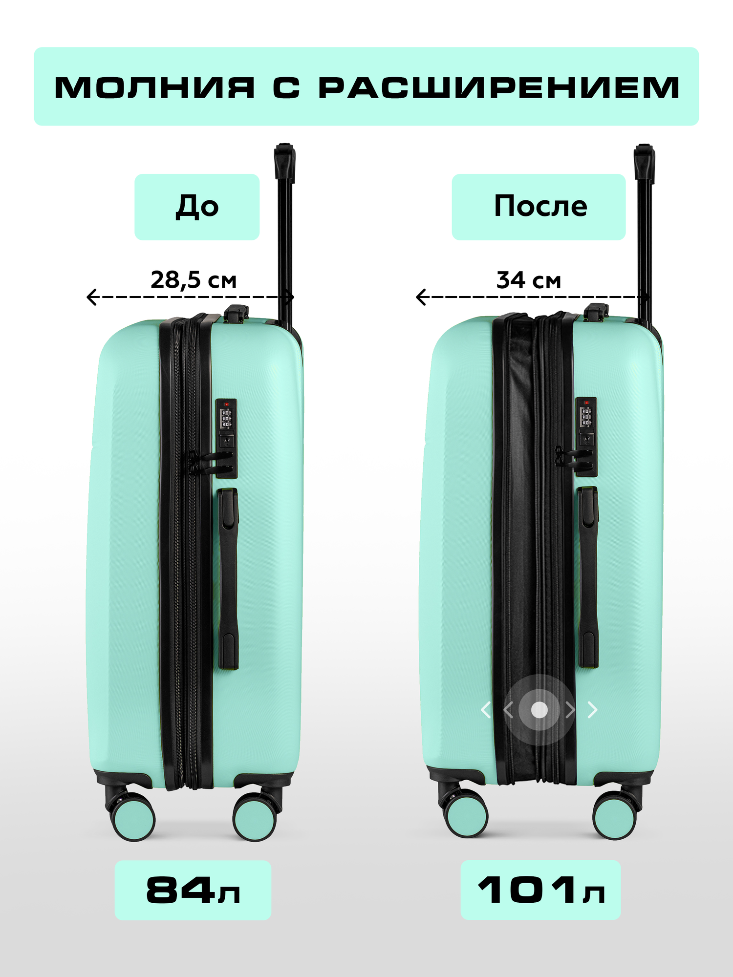 Чемодан на колесах L мятный Bonle, премиум ABS-пластик 75,5 см, 101 л, большой дорожный