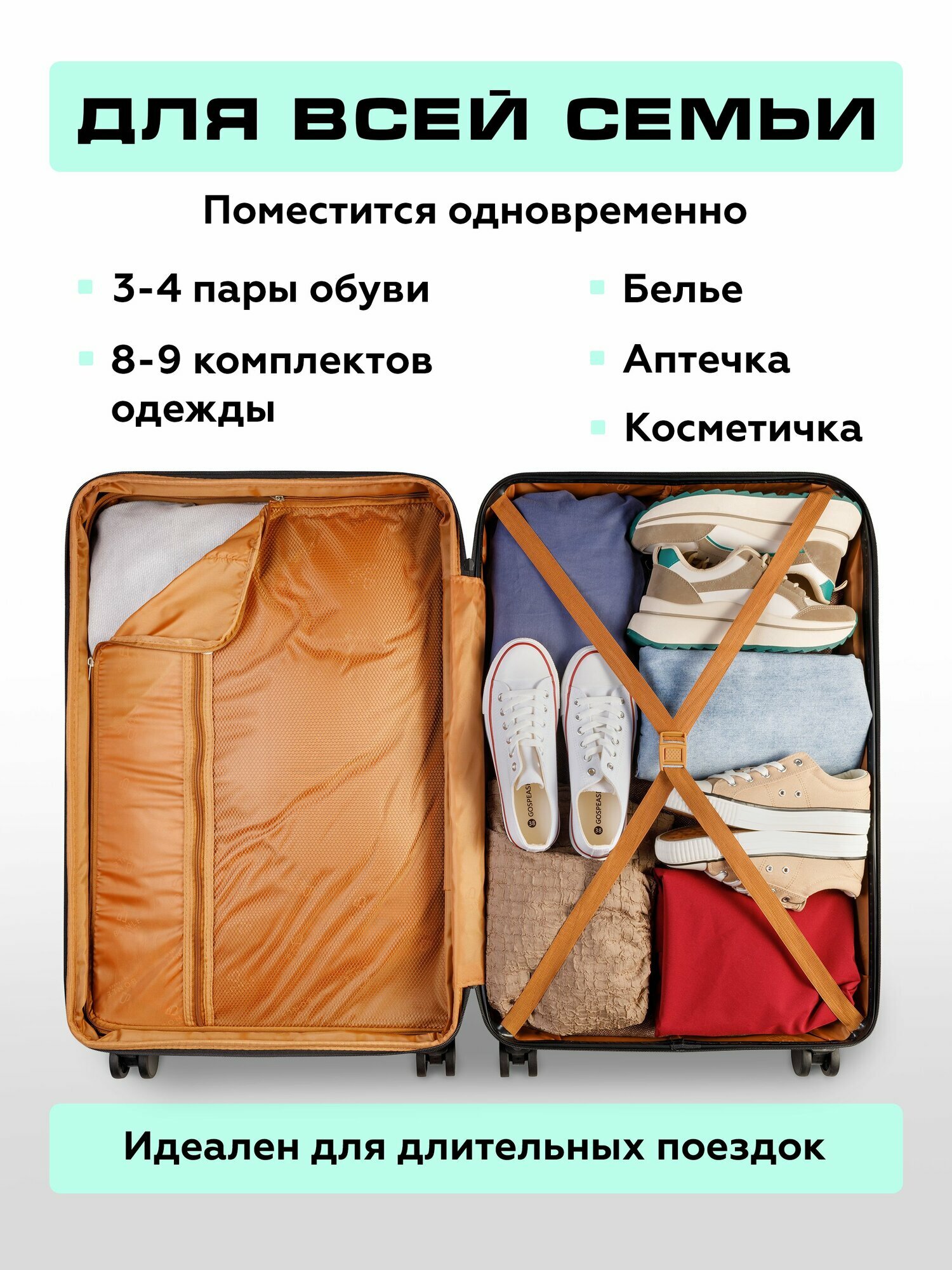 Чемодан на колесах L черный Bonle, премиум ABS-пластик 75,5 см, 101 л, большой дорожный