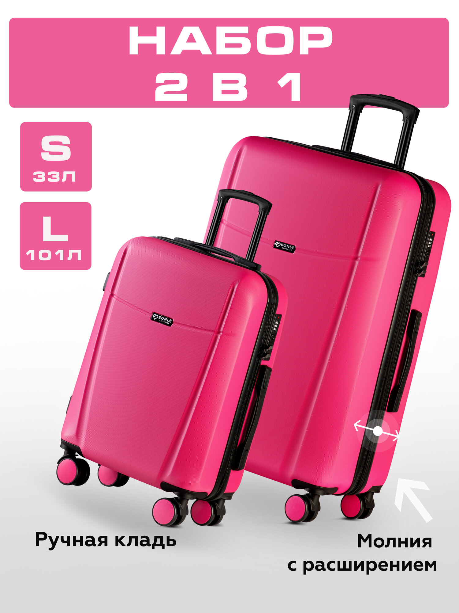 Купить Комплект чемоданов 2шт, Тасмания, размер L,S 75,5см, 55см, 101л, 33л дорожный маленький ручная кладь и большой, Розовый, Розовый