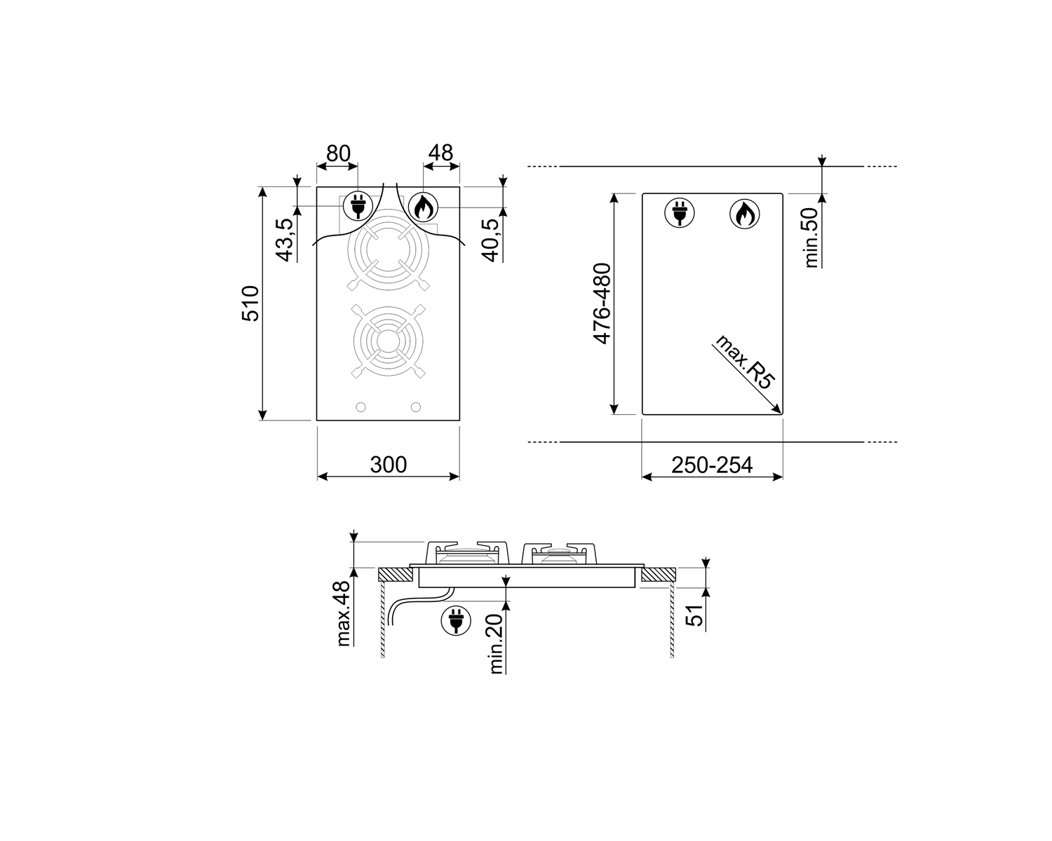 Встраиваемая газовая варочная панель Smeg PV332CN