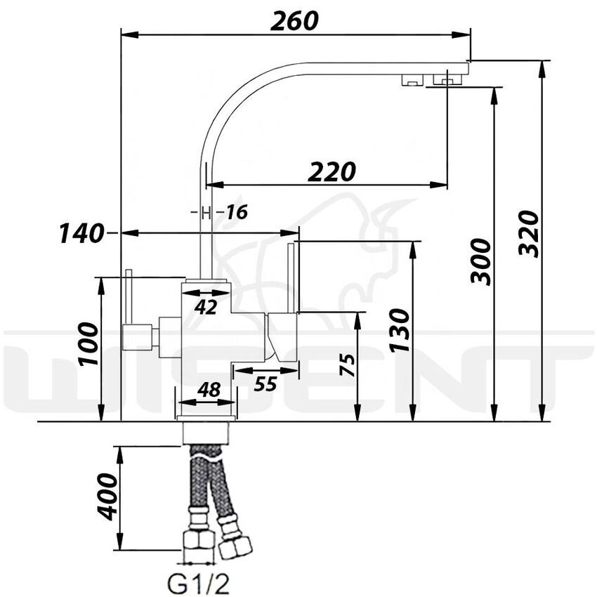 Смеситель для кухни высокий однорычажный с подводкой питьевой воды Wisent цвет бежевый (W4333-3-20) интересное: