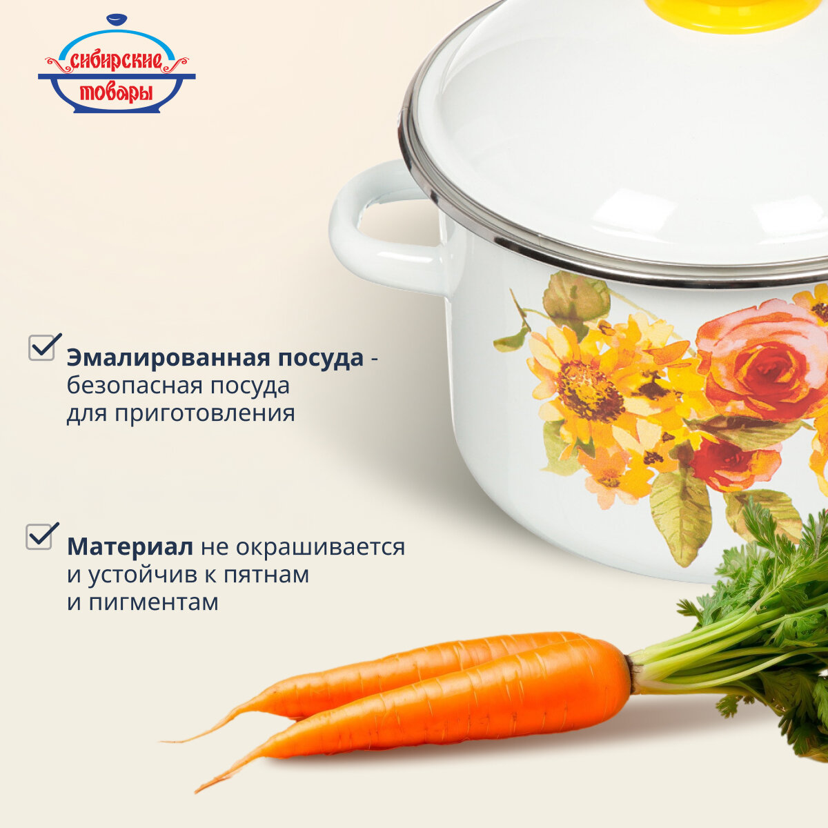 Купить Кастрюля эмалированная 3 литра с крышкой для индукционной плиты, Сибирские товары
