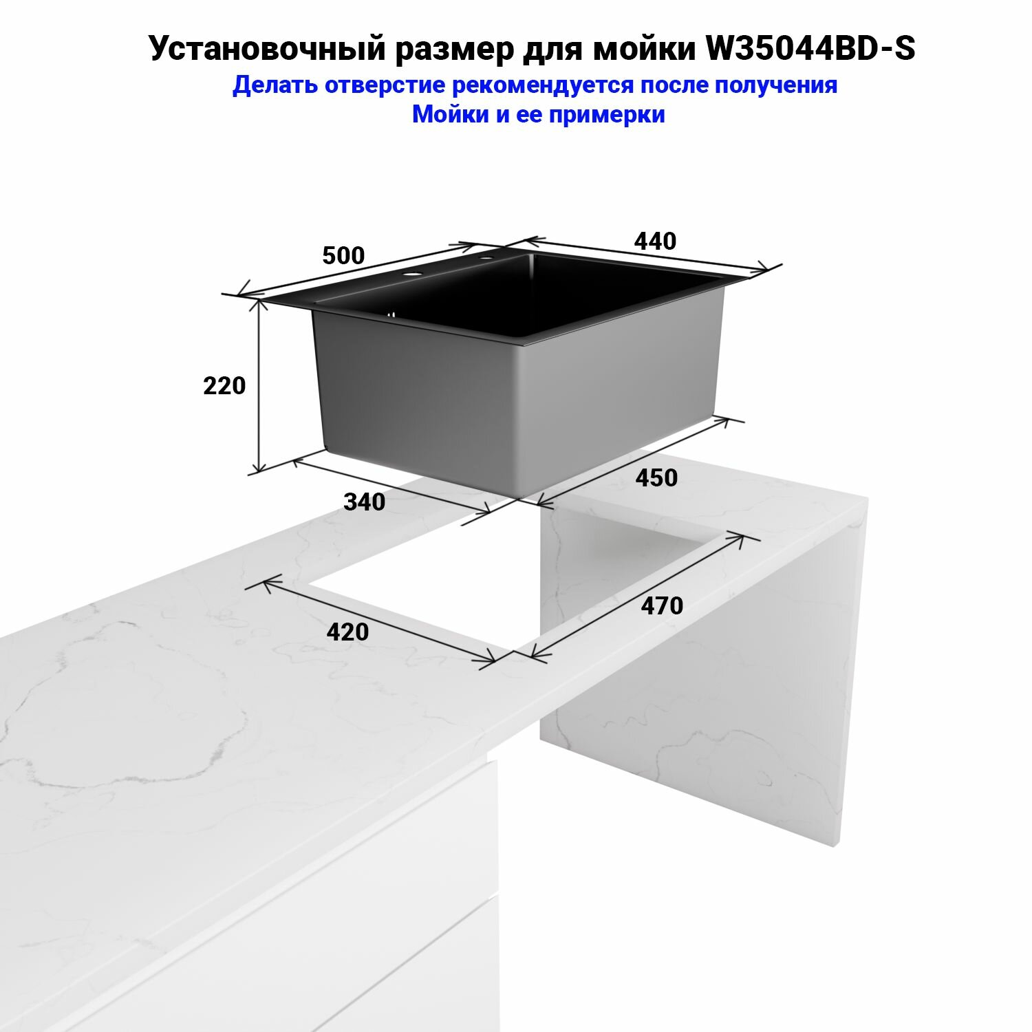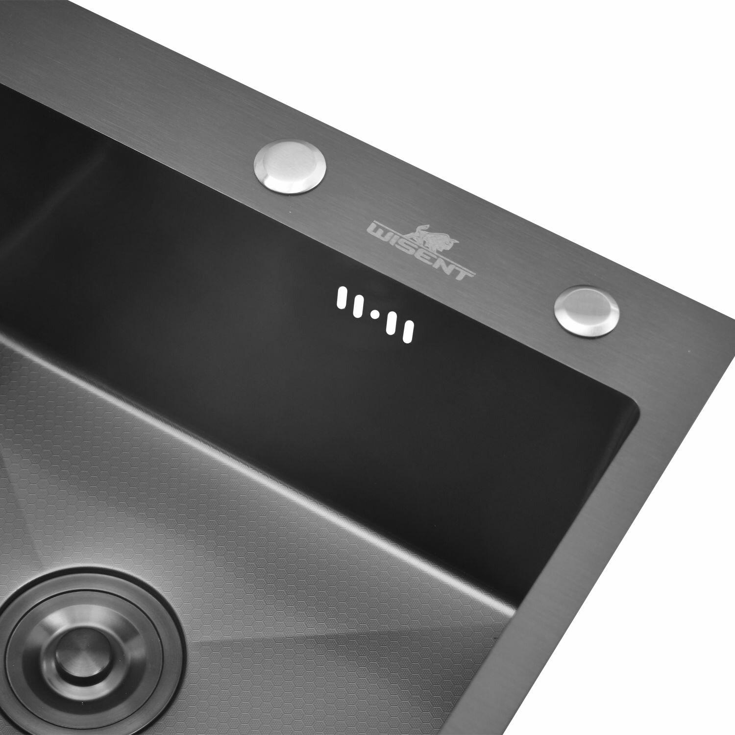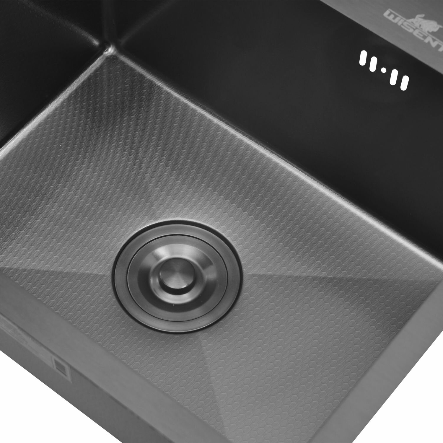 Комплект кухонная мойка из нержавеющей стали WISENT 5044B с PVD покрытием (50х44см) с коландером и дозатором.